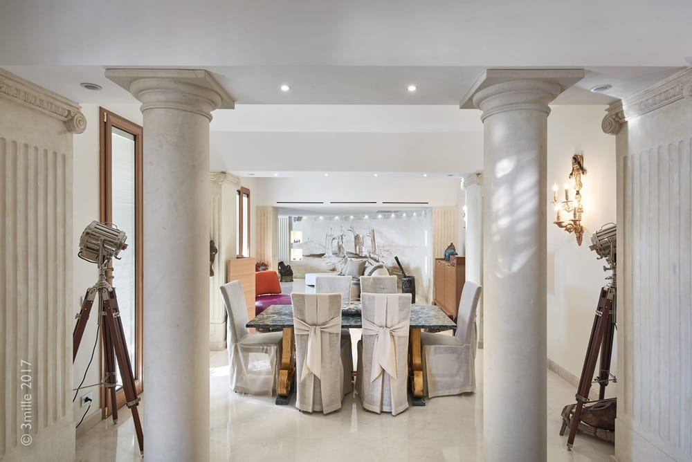 Bâtie sur quatre niveaux, cette demeure rénovée avec goût et matériaux de qualité dispose d’un grand séjour – salle à manger, d’une cuisine équipée ainsi que de six chambres et cinq salles de bains. Un appartement indépendant et un grand parking complètent cette offre. Grandes terrasses avec cuisine d’été, sauna, solarium et piscine semi – couverte avec une vue imprenable sur le Cap Martin.