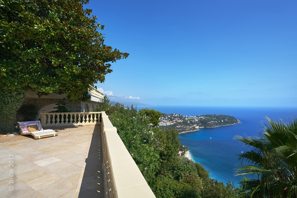 A cinq minutes de la Principauté de Monaco, somptueuse propriété en position dominante, implantée sur un terrain de 3500 m2 complanté de différentes essences méditerranéennes.