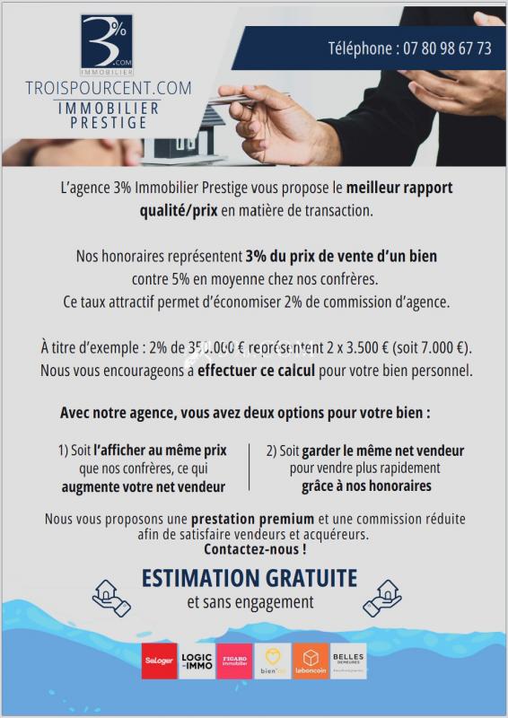 3% Immobilier Prestige présente : magnifique villa Belle Epoque de 160 m2 située à Valescure dans un secteur abritant de nombreuses villas classées. En position dominante, elle offre un cadre de vie unique et dispose d’une jolie vue mer sur la Baie de Saint-Raphaël. Elle se compose d’un séjour lumineux de plus de 30 m2 avec cheminée dont une partie correspond à une ancienne chapelle. La maison dispose de 4 chambres, d’un bureau, de deux salles de bains et d’une belle terrasse plein sud. Le jardin arboré et piscinable permet de profiter de moments de détente en famille ou entre amis. Le tout, à l’abri d’une terrasse couverte avec coin barbecue. La villa est parfaitement entretenue et a bénéficié de gros travaux fin 2023 : couverture, chaudière gaz à condensation et ballon d’eau chaude. Construction en pierres de l’Esterel, tomettes provençales et carrelage de Salernes, fenêtres alu double vitrage, volets alu. Un bien rare, dernier témoin d’une époque faste pour la ville de Saint-Raphaël. Vous désirez en apprendre plus sur ce bien : Contactez Jérémi MICHAUX, votre négociateur immobilier RSAC 812 979 201. Tél: 07 80 98 67 73 – Courriel: jmichaux@troispourcent.com – Le prix indiqué comprend les honoraires réduits à la charge de l’acquéreur. Les honoraires de l’agence sont de seulement 3% du prix net vendeur. Prix du bien net vendeur: 662.622 euros. Honoraires d’agence de seulement 19.878 euros. Société 3% Immobilier Prestige, réseau national et expertise locale. Bureaux nationaux situés au 66 avenue Thalès, Epsilon II, Saint-Raphaël (83). Les informations sur les éventuels risques auxquels ce bien est exposé sont disponibles sur le site Géorisques: www.georisques.gouv.fr. – Annonce rédigée et publiée par un Agent Mandataire –