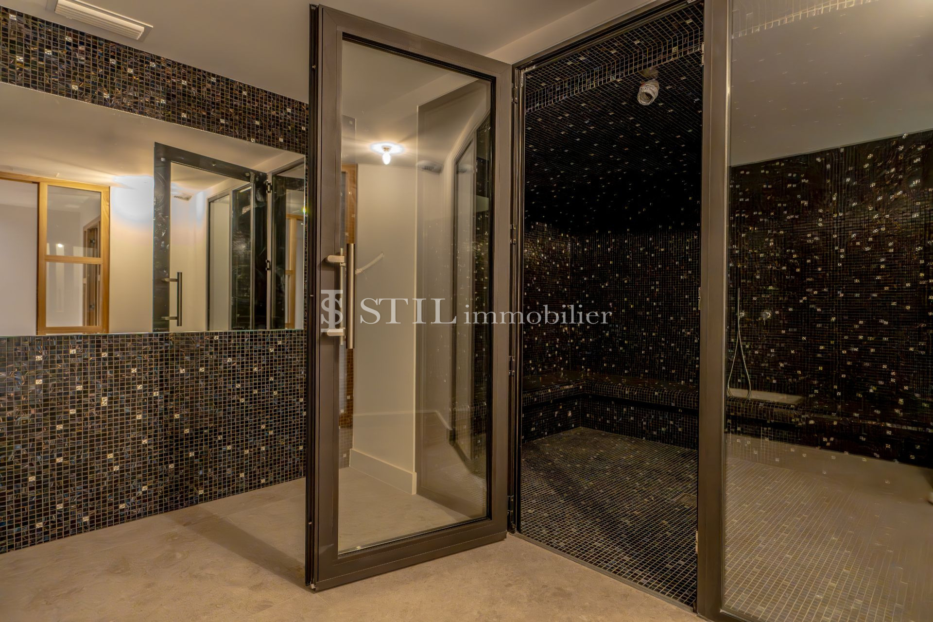 Vente villa Sainte-Maxime. Nichée dans un domaine sécurisé et paisible à proximité du centre-ville, cette magnifique villa neuve offre une superbe vue sur la mer et des finitions de luxe. Elle dispose d’un hall de réception, d’un grand séjour avec cheminée ouvrant sur une terrasse et un patio orné d’une fontaine. La cuisine ouverte est entièrement équipée, et l’arrière-cuisine comprend une chambre froide. La villa compte quatre suites, chacune avec salle d’eau et dressing, y compris une suite parentale exceptionnelle avec salle de bains, douche, dressing et solarium. Un grand garage, une salle de sport, un hammam et une cave à vins enrichissent encore plus cette demeure d’exception. Le jardin, agrémenté d’une piscine, est joliment paysagé. Profitez de frais réduits pour l’acquisition de ce bien d’exception.