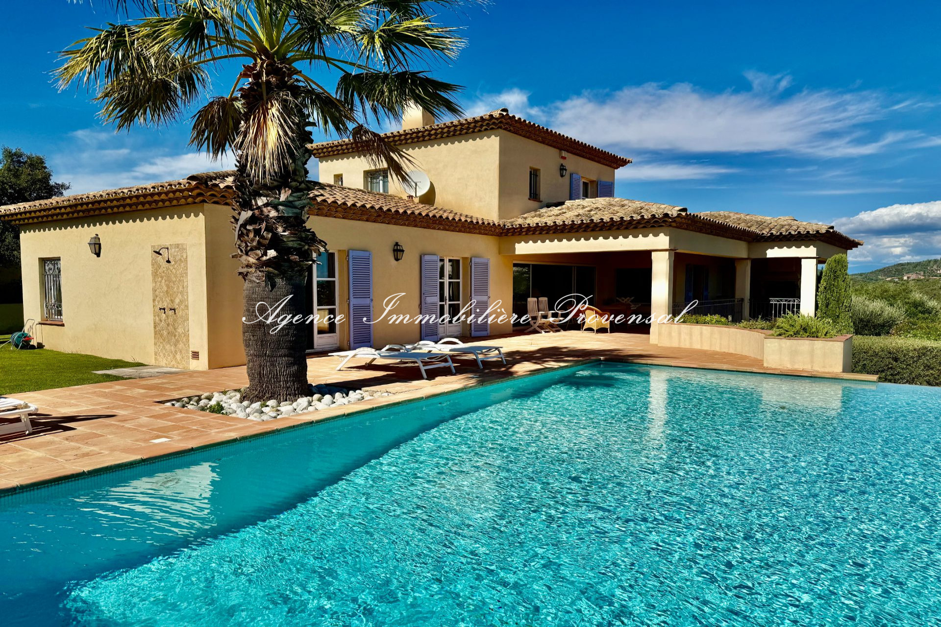 L’agence immobilière Provensal, spécialiste de l’immobilier à Sainte-Maxime, vous propose à la vente cette magnifique villa néo-provençale située dans un domaine prisé et fermé, au calme absolu, offrant une vue mer exceptionnelle.