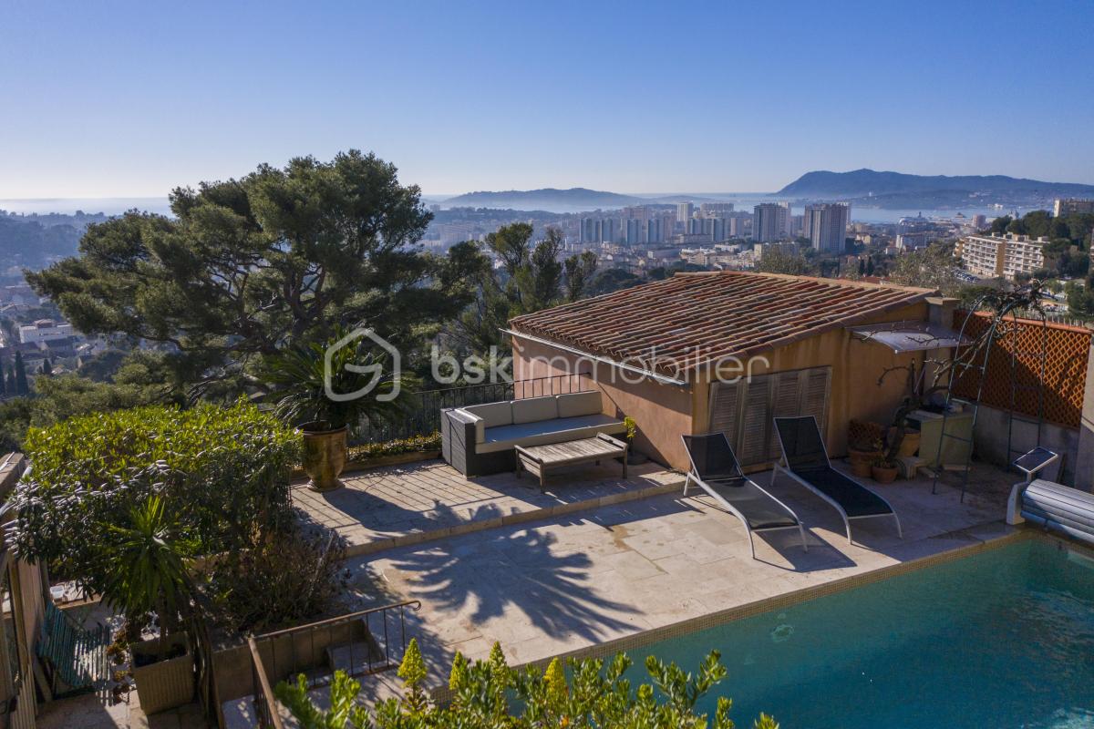 Située sur les hauteurs prisées du Faron, cette magnifique villa vous séduira par son cadre privilégié, son calme et sa vue imprenable sur la Rade de Toulon, sans aucun vis-à-vis. Un emplacement unique, une maison pensée pour le confort au quotidien avec une conception tournée vers l’efficacité énergétique. Baignée de lumière grâce à son exposition plein sud, cette propriété développe une surface habitable généreuse et fonctionnelle. La maison principale se compose de : • 4 chambres, dont une spacieuse suite parentale de 30m² • Une salle de bain indépendante équipée d’une baignoire et d’une douche italienne • Une cuisine indépendante entièrement aménagée et équipée, complétée par un cellier/arrière-cuisine • Un vaste salon-séjour-salle à manger, largement ouvert sur l’extérieur, profitant d’une luminosité constante et d’une vue mer panoramique • Deux WC indépendants • Un ascenseur intérieur desservant l’ensemble des niveaux, pratique et accessible Un studio indépendant avec sa propre entrée et terrasse privée complète le bien, idéal pour recevoir en toute autonomie ou pour un projet locatif. Les extérieurs offrent : • Une piscine sans vis-à-vis avec terrasse plein sud et coin détente • Stationnement jusqu’à 5 véhicules et un garage • Des espaces verts arborés Équipements techniques & confort moderne : • Climatisation réversible dans toutes les pièces • Sol chauffant • Pompe à chaleur pour chauffage et eau chaude • Panneaux solaires contribuant aux économies d’énergie • Volets roulants électriques centralisés Cette propriété rare sur le secteur allie confort, fonctionnalité et emplacement d’exception. À découvrir sans tarder ! Cette annonce référence 285958 vous est présentée par votre agent commercial BSK Immobilier SABRI BOUZNAD (EI) immatriculé au RSAC de TOULON (83000) sous le numéro 81002967800036. Prix du bien : 1 150 000,00 € Les honoraires d’agence sont à la charge du vendeur. A propos des performances énergétiques : Date de réalisation du diagnostic énergétique : 30/08/2024 Score DPE : 92 kWhEP/m²/an Score GES : 3 kgepCO2/m²/an Montant estimé des dépenses annuelles d’énergie pour un usage standard : entre 1430.00 € et 1980.00 € par an. Prix moyens des énergies indexés sur l’année 2021 (abonnements compris). Les informations sur les risques auxquels ce bien est exposé sont disponibles sur le site Géorisques : www.georisques.gouv.fr