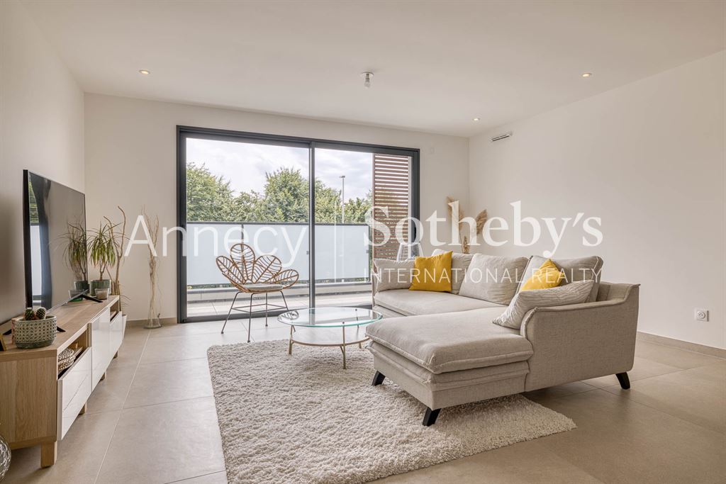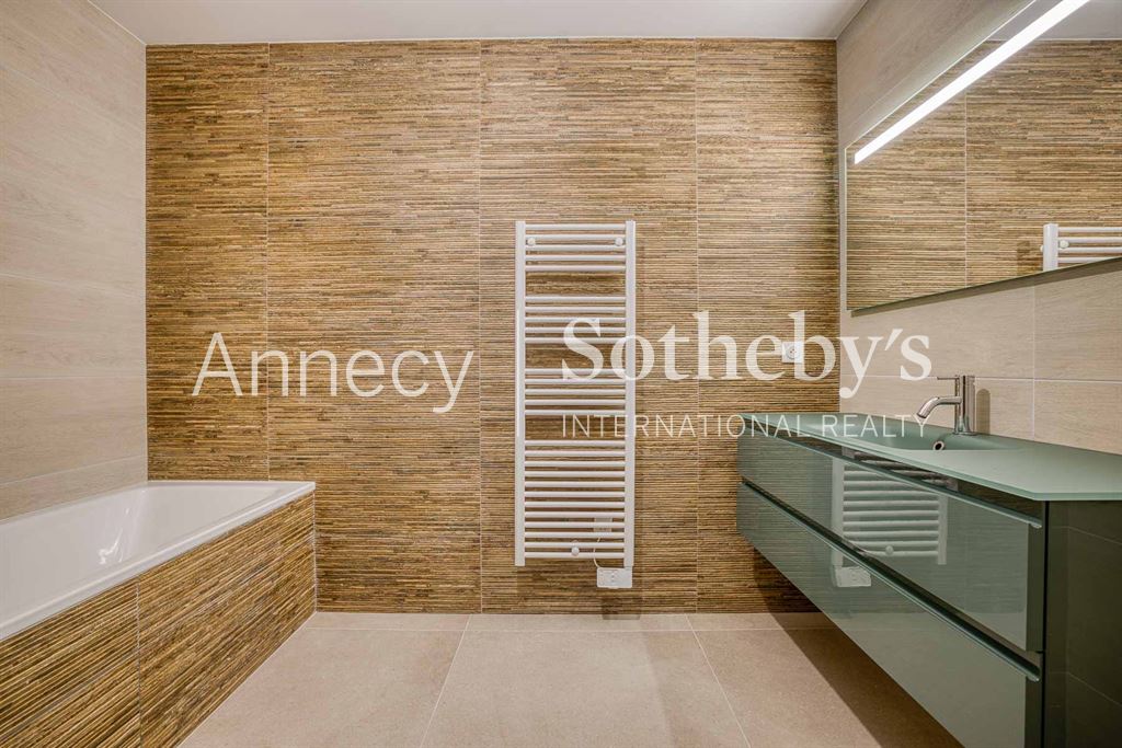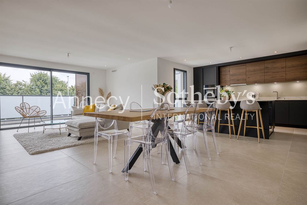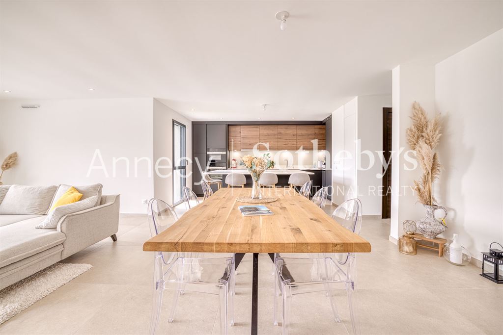 ANNECY SOTHEBY’S INTERNATIONAL REALTY vous propose ce spacieux et magnifique appartement aux prestations haut de gamme, dans une très belle et intimiste copropriété de 2022. Avec sa vaste pièce de jour de 50 m² et sa cuisine ouverte toute équipée VERCAUTEREN, cet appartement se démarque par ses matériaux de qualité. Tout équipé en domotique, avec BSO, chauffage individuel basse température au sol ce bien obtient la note de A en classe énergie.