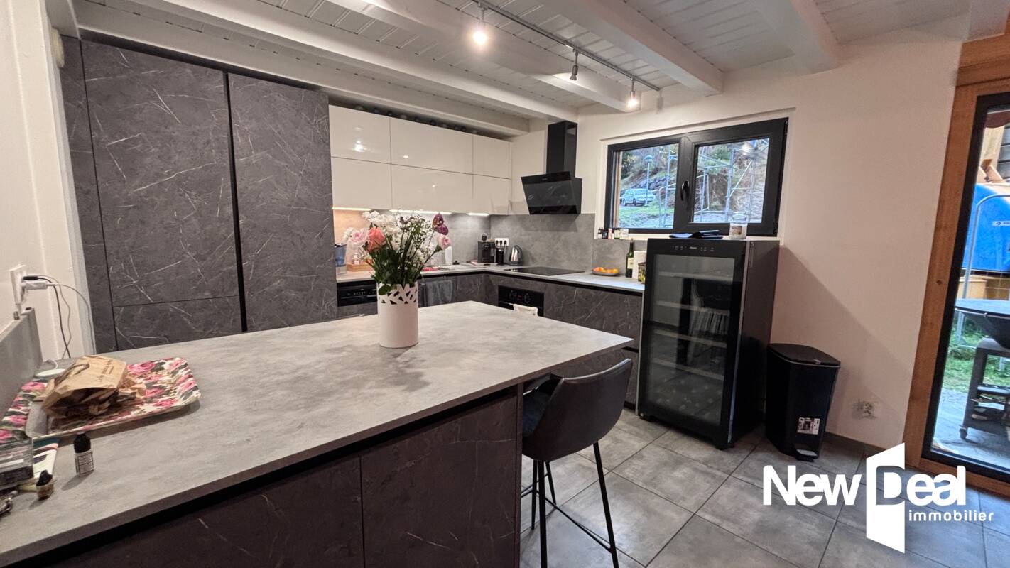 LC5272 CHAMONIX MONT-BLANC – Superbe chalet contemporain de 129 m² habitables (152 m² surface totale) idéalement situé dans le secteur très prisé des Gaillands. 4 chambres, 2 salles de douche, vaste séjour avec cuisine ouverte donnant sur terrasse et jardin exposés plein sud, offrant une vue imprenable sur le Massif du Mont‑Blanc. À deux pas du mur d’escalade des Gaillands, du lac et à proximité immédiate de la gare SNCF et des bus. Garage, buanderie, mezzanine et nombreuses places de parking extérieures. Calme et emplacement d’exception. Espace de vie lumineux : cuisine ouverte, salle à manger et séjour s’ouvrant sur la terrasse et le jardin exposés plein sud, face au Mont‑Blanc. Emplacement privilégié pour les activités de montagne (escalade, départ des randonnées et lac à proximité) et excellente desserte ferroviaire et bus. On distingue un chauffage au sol au RDC ainsi qu’un poêle à granules. COUP DE COEUR! Monsieur Laurent CAILLET, agent commercial, mandataire NEW DEAL IMMOBILIER – Carte professionnelle N° : CPI 7401 2018 000 032 720 – CCI d’ANNECY. Garantie financière : GALIAN, 89 rue de la Boétie – 75008 Paris pour un montant de 120.000 €. Activité exercée sans maniement de fonds RSAC d’Annecy : 443 480 553 – Adresse consultant : 78, chemin des bios 74000 CHAMONIX Mont-Blanc Téléphone : 0661972277 / E-mail : l.caillet@newdealimmobilier.fr Site internet : https://www.newdealimmobilier.fr/agent/vallee-chamonix-mont-blanc-74400 Les informations sur les risques auxquels ce bien est exposé sont disponibles sur le site Géorisques : www.georisques.gouv.fr