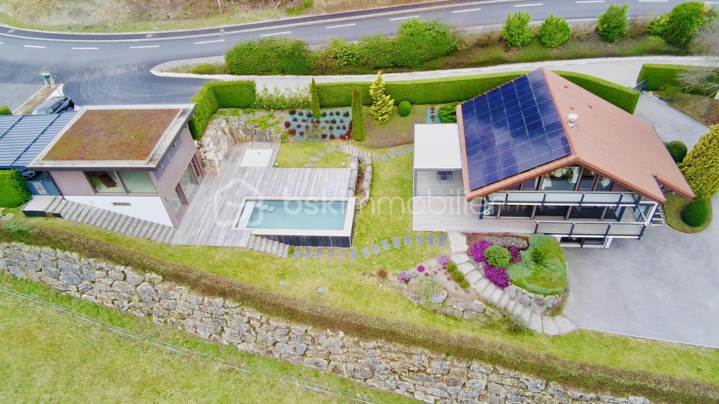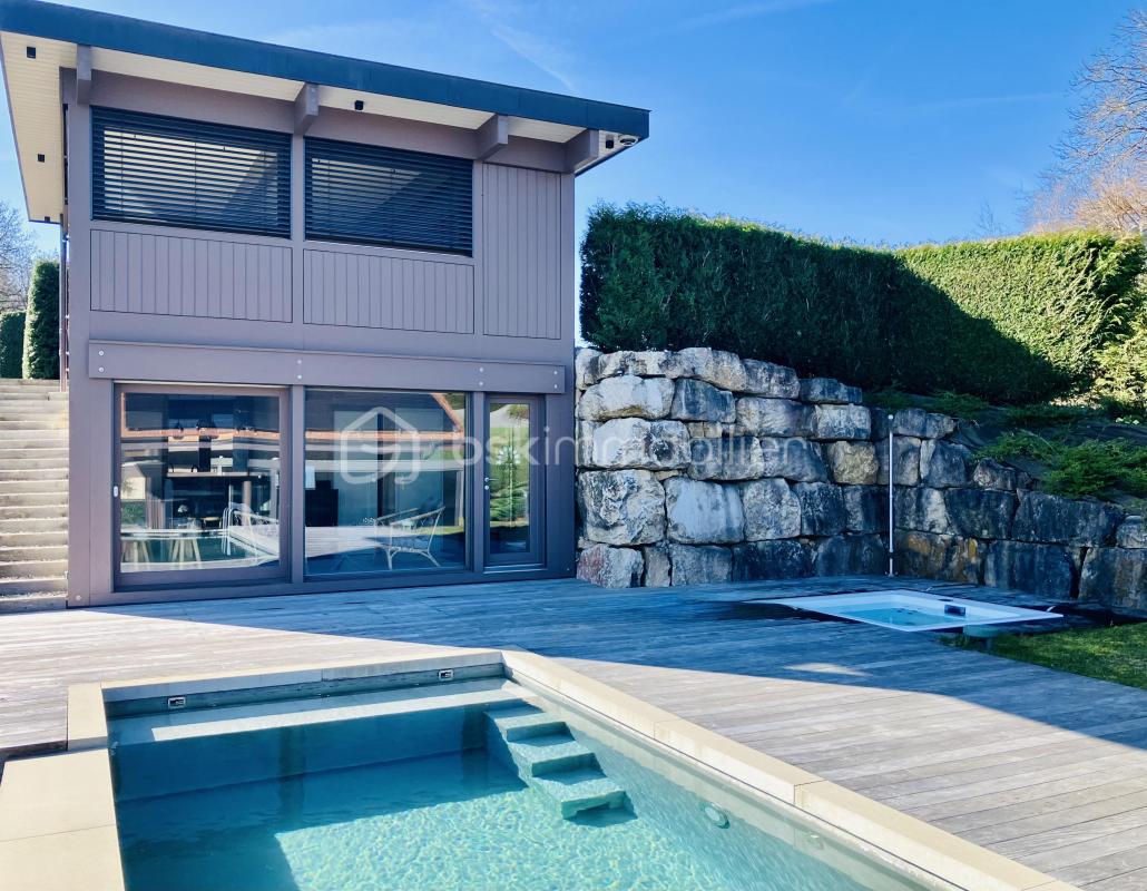 Cette propriété rare offre un cadre de vie exceptionnel avec un panorama remarquable sur la vallée de l’Arve et les massifs alpins environnants. Signée Dunoyer, elle incarne avec élégance l’architecture contemporaine bois et verre qui fait la réputation de ce constructeur reconnu pour la qualité et l’esthétique de ses réalisations. À proximité de toutes les commodités, la propriété se compose de deux maisons indépendantes, offrant de beaux volumes, une grande modularité d’usage (résidence familiale, profession libérale, revenu locatif) et un véritable art de vivre entre intérieur et extérieur. La maison principale : Elle propose de superbes espaces de vie lumineux, largement ouverts sur le paysage, notamment : • Deux espaces de vie avec cuisines ouvertes, dont un avec cheminée • 2 suites • 3 chambres • 4 salles de douche et 1 salle de bain • 4 WC • Un bureau, idéal pour le télétravail • Une grande buanderie • Un appartement indépendant en rez-de-jardin • Une pergola bioclimatique vitrée prolonge les espaces de vie et crée une véritable pièce à vivre supplémentaire tournée vers le jardin et les montagnes • Parkings et carport avec borne de recharge rapide pour véhicules électriques • Des panneaux solaires alimentent la propriété Un extérieur haut de gamme dédié au bien-être : Entre les deux maisons, une élégante terrasse en bois accueille : • Une piscine au design naturel avec nage à contre-courant et volet roulant de sécurité immergé • Un spa encastré • Une douche chaude extérieure Un espace pensé comme un véritable lieu de vie, intime et privilégié, pour se ressourcer, recevoir et profiter pleinement de la beauté du paysage. La seconde maison : Elle offre un espace complémentaire, indépendant et polyvalent, avec : • Un espace de vie avec cuisine-bar ouverte • Un sauna sur mesure en cèdre rouge • Une salle de douche • Un WC indépendant • À l’étage, une grande pièce avec vue panoramique, actuellement aménagée en salle de sport / yoga Ce second espace est également idéal pour une profession libérale, une activité bien-être ou un logement indépendant. Les atouts majeurs : • Architecture bois & verre signée Dunoyer • Panorama alpin exceptionnel • Grande modularité d’usage • Environnement calme, sur les hauteurs d’Éteaux, en ceinture urbaine de La Roche-sur-Foron • Accès rapide à Annecy, Genève et aux stations alpines, dont Chamonix • À 5 minutes du Léman Express, 3 minutes de l’A410, 35 minutes de l’aéroport international de Genève • À proximité d’un réseau d’établissements scolaires réputés, de la maternelle aux études supérieures, avec transport scolaire Un bien confidentiel et rare : Une propriété unique, pensée pour ceux qui recherchent à la fois espace, élégance et qualité de vie, dans un cadre naturel d’exception. Une visite virtuelle immersive est accessible sur demande, après un premier échange. Dans un souci de confidentialité et de qualité de présentation, elle est réservée aux acquéreurs ayant un projet abouti. Cette annonce référence 326077 vous est présentée par votre agent commercial BSK Immobilier CORINNE DESCOUT (EI) immatriculé au RSAC de ANNECY (74000) sous le numéro 48508590600058. Prix du bien : 1 530 000,00 € Les honoraires d’agence sont à la charge du vendeur. Les informations sur les risques auxquels ce bien est exposé sont disponibles sur le site Géorisques : www.georisques.gouv.fr