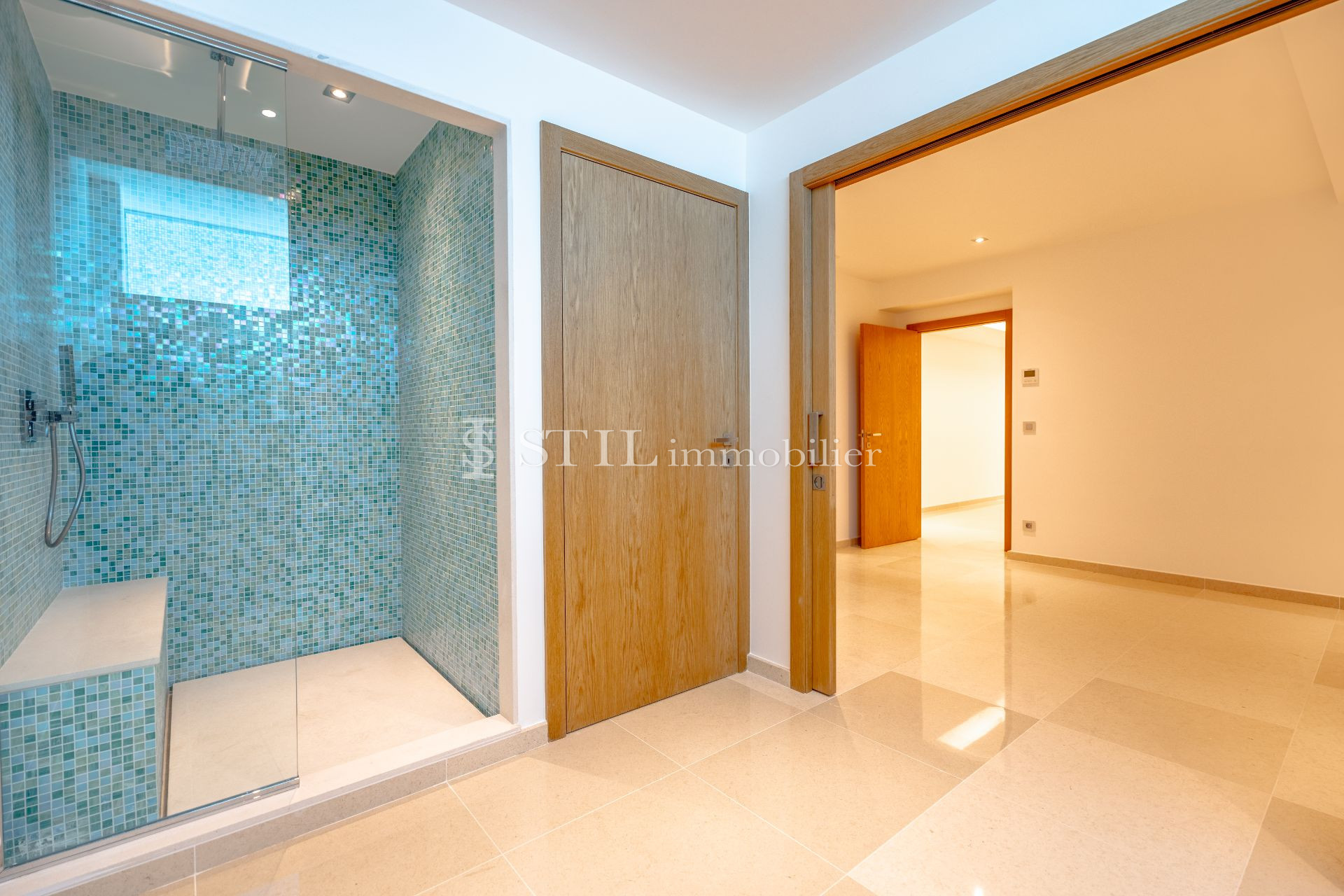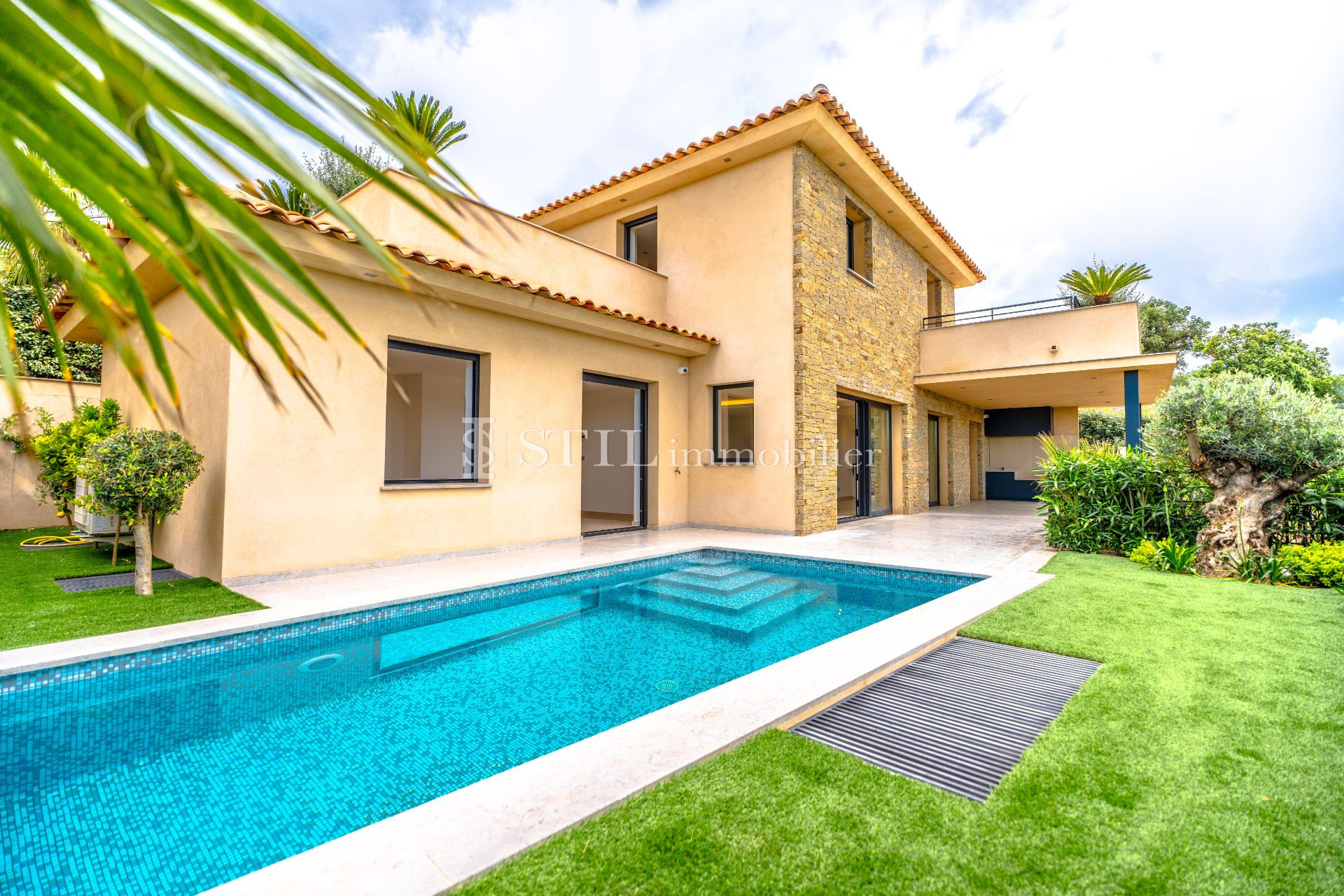 Vente villa Sainte-Maxime. Villa neuve construite avec des matériaux de qualité et hauts de gamme, avec une belle vue dégagée sur les collines et aperçue mer. Située dans un quartier calme à proximité des commodités, elle se compose : hall d’entrée, vestiaire et wc invités, vaste séjour ouvrant sur terrasse et patio avec fontaine, cuisine us équipée, 4 chambres avec chacune salle d’eau et dressing. Hammam, cave à vins et un grand garage complètent les atouts de cette villa. Une piscine agrémente le jardin joliment arboré. Frais notaire réduit.