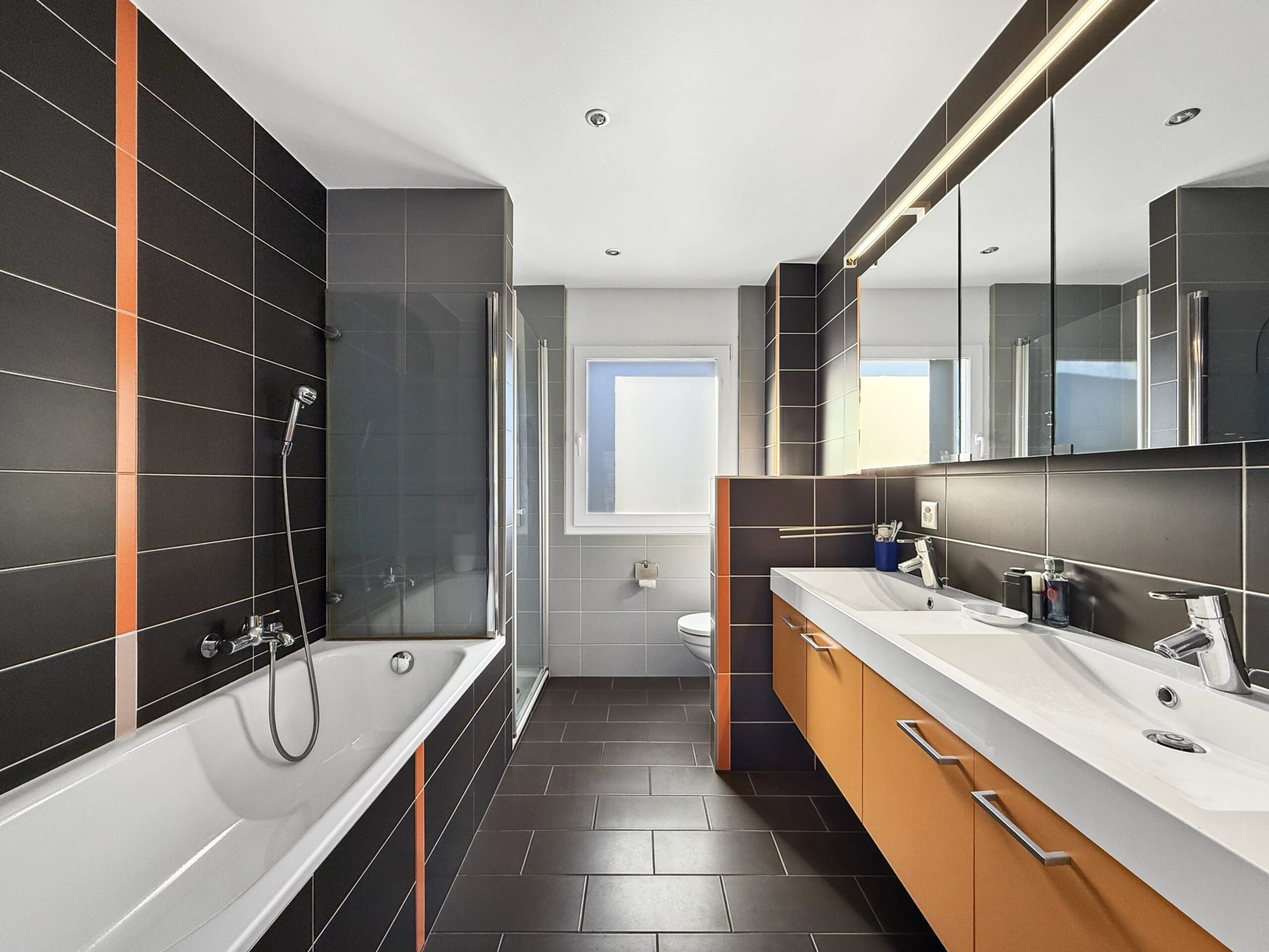 – Salle d’eau double vasques, douche et bain.