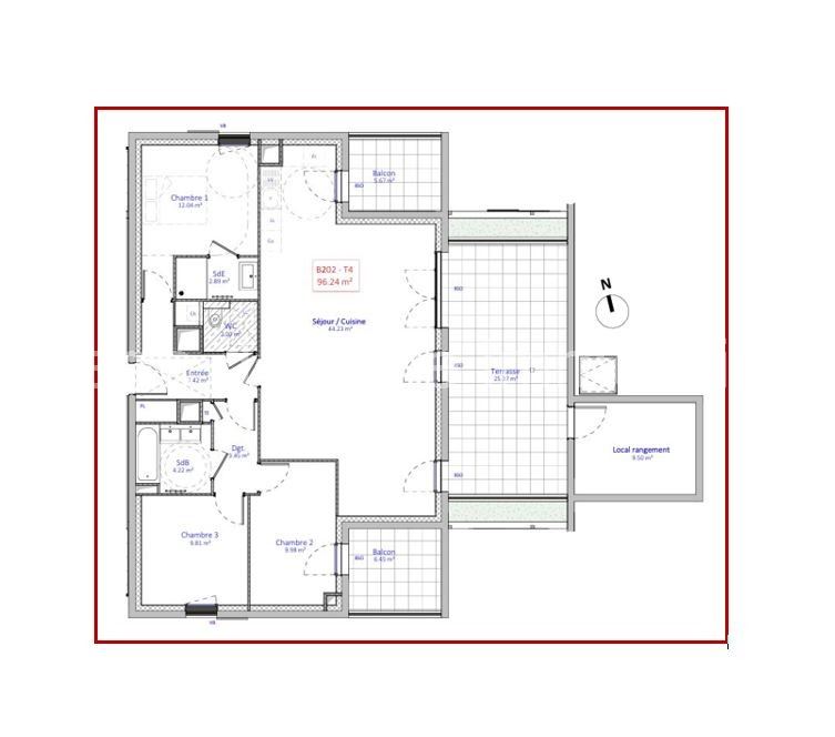 Dès l’entrée, votre regard donne sur le salon avec cuisine ouverte de 24.10m² qui ouvre sur le balcon sud de 6.49m² au dernier étage sans vis-à-vis. La baie vitrée est équipée de brise soleil orientable (BSO).