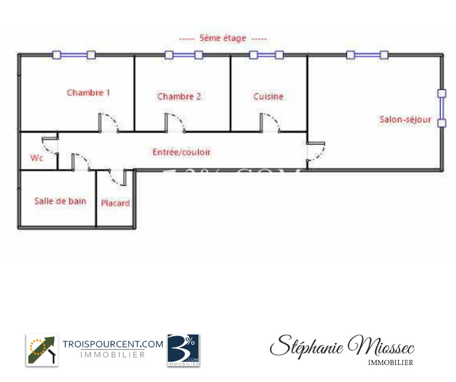 EXCLUSIVITE – Situé à proximité immédiate du centre-ville de Saint-Brieuc, au sein d’une résidence sécurisée, cet appartement T3 de 70m2 se trouve au 5e étage sur 6 avec ascenseur et bénéficie d’une belle vue dégagée sur la vallée de GOUEDIC. Il se compose d’un salon lumineux de 19 m2 avec parquet massif d’origine, d’une cuisine indépendante, de deux chambres, d’une salle de bain, de toilettes séparées ainsi que d’un espace buanderie. L’appartement dispose d’un beau balcon prolongé d’un balcon filant faisant le tour du logement et, de ce fait, de nombreuses portes-fenêtres qui lui apportent une belle luminosité tout au long de la journée. Un rafraîchissement global est à prévoir. Le chauffage est assuré par une chaudière collective au gaz de ville avec répartiteurs. La résidence est calme, les bus passent au pied de l’immeuble et le centre-ville est accessible rapidement. Le bien est complété par une cave et une place de parking en sous-sol. Un appartement lumineux, bien situé, idéal pour un premier achat ou un investissement. Libre de toute occupation, il est prêt à accueillir votre projet sans contrainte de locataire en place. Vidéo de présentation disponible sur demande – A propos de la copropriété : Pas de procédure en cours – Nombre de lots : 3 lots sur 66 (30 lots d’habitation) – Charges prévisionnelles annuelles : 860 euros/an – Les honoraires sont à la charge de l’acquéreur. Pour découvrir cet appartement, contactez votre conseillère, Stéphanie MIOSSEC EI au 07 81 57 59 65 – RSAC de St Brieuc no 877 562 496 – 3%.COM immobilier : réseau national à honoraires réduits à 3% TTC – Annonce rédigée et publiée par un Agent Mandataire –