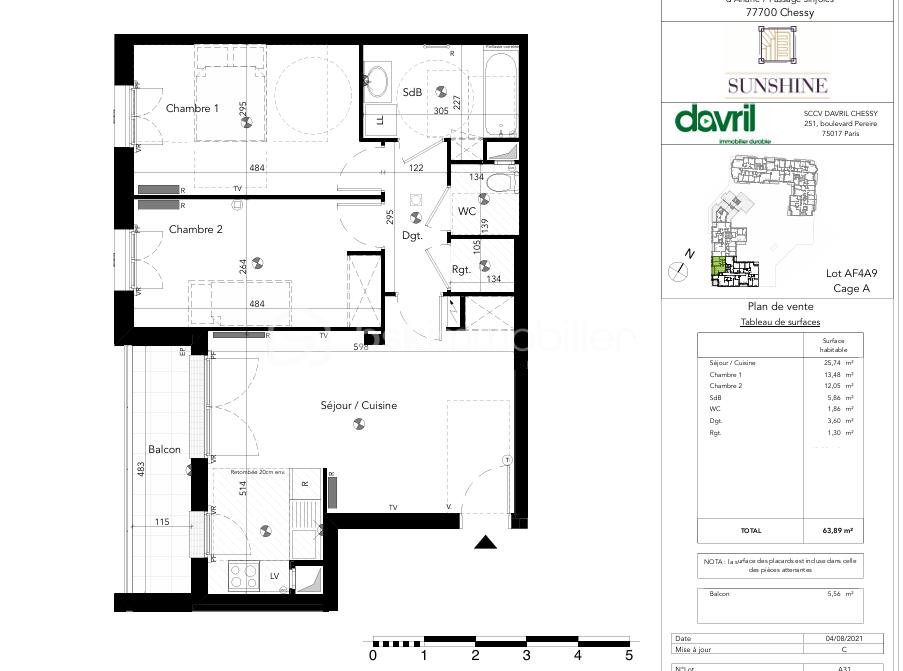 Situé dans le nouveau quartier de Chessy, à environ 8 minutes à pied de la gare, découvrez ce magnifique appartement F3, livré en 2023, dans un environnement calme, neuf et proche de toutes les commodités (commerces, écoles, transports …). Cet appartement comme neuf offre de très belles prestations : Une pièce de vie lumineuse avec cuisine ouverte entièrement équipée et aménagée avec goût Un balcon de près de 6m2, exposé sud, ouest avec vue dégagée sans aucun vis-à-vis Deux grandes chambres Une spacieuse salle de bain Un cagibi / espace de rangement Une place de parking en sous-sol sécurisé Une cave privative Le tout dans une résidence récente et sécurisée, au cœur d’un quartier en plein essor. Belles prestations, parquet , cuisine Cuisinella full équipée, aucun frais à prévoir, volets roulants motorisés . Idéal pour une famille, un jeune couple ou un investissement locatif. À visiter sans tarder ! Cette annonce référence 291147 vous est présentée par votre agent commercial BSK Immobilier ENZO CARMINE (EI) immatriculé au RSAC de MEAUX (77100) sous le numéro 89869039100013. Prix du bien : 390 000,00 € Les honoraires d’agence sont à la charge du vendeur. A propos de la copropriété : Pas de procédure en cours. Nombre de lots : 100 Charges prévisionnelles annuelles : 2 140,00 € A propos des performances énergétiques : Date de réalisation du diagnostic énergétique : 28/03/2023 Score DPE : 67 kWhEP/m²/an Score GES : 2 kgepCO2/m²/an Montant estimé des dépenses annuelles d’énergie pour un usage standard : entre 290.00 € et 439.99 € par an. Prix moyens des énergies indexés sur l’année 2024 (abonnements compris). Les informations sur les risques auxquels ce bien est exposé sont disponibles sur le site Géorisques : www.georisques.gouv.fr