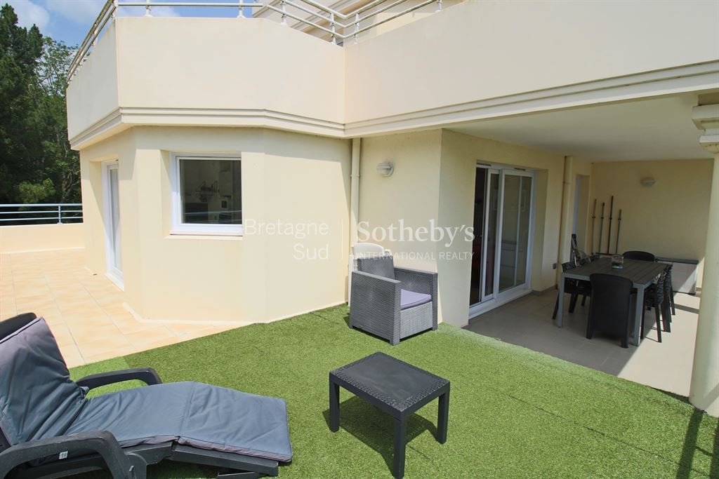 EXCLUSIVITÉ. La Baule ; à 250 mètres de la plage, au deuxième étage avec ascenseur d’une résidence de standing sécurisée, spacieux appartement de 51 m² avec une grande terrasse et loggia plein sud. Il se compose d’un hall d’entrée avec de nombreux rangements, une grande pièce de vie lumineuse avec un espace salon, une tres belle cuisine ouverte aménagée et équipée , deux chambres dont une suite privative avec salle de bain, une salle d’eau, un WC séparé. L’ensemble des pièces a un accès privatif sur la terrasse qui offre une vue panoramique sur le parc de la résidence et les piscines. L’appartement est vendu avec une place de parking intérieur couverte et sécurisé.