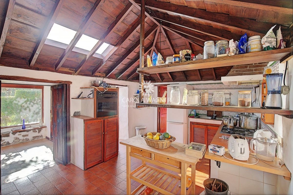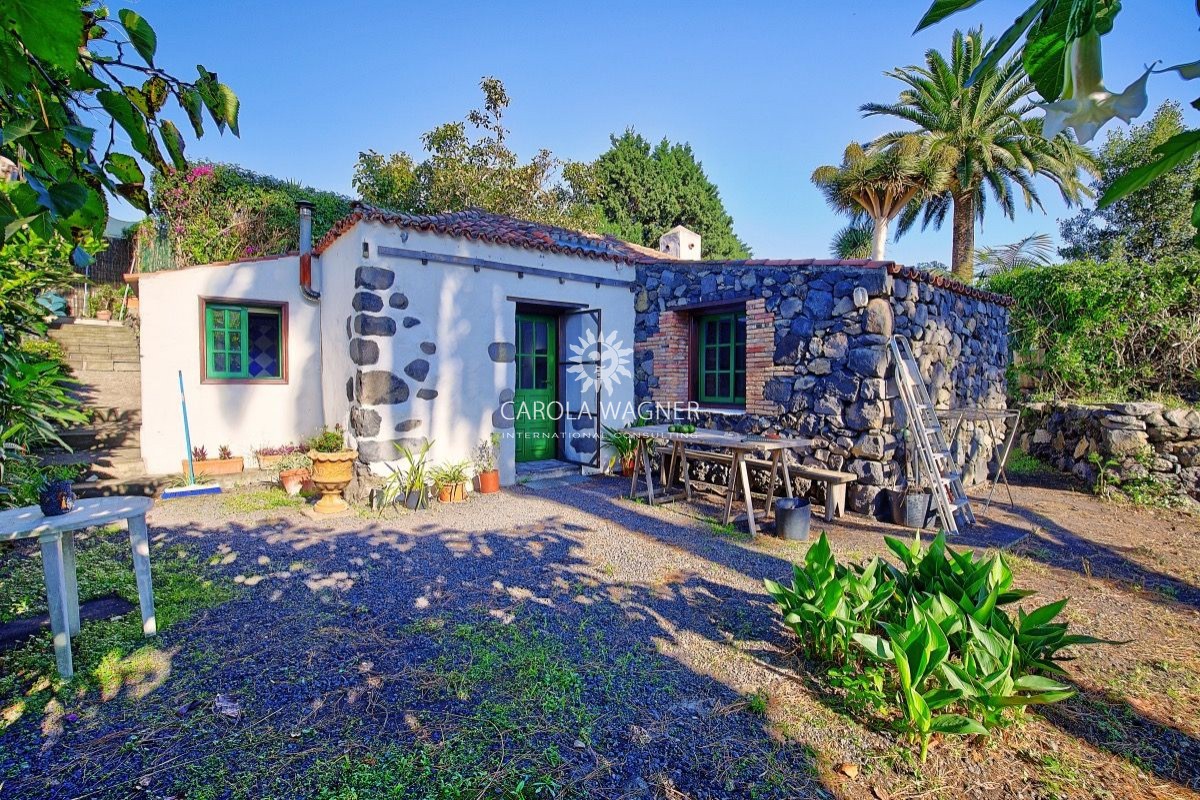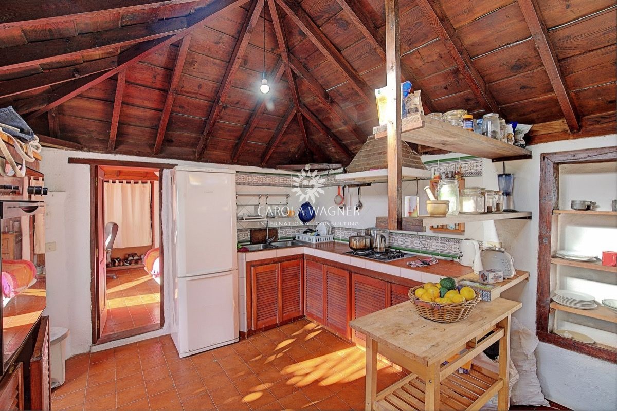 TRÈS CHARMANTE PETITE PROPRIETE, AVEC MAISON D’AMIS ET PISCINE DANS MAGNIFIQUE JARDIN, AVEC PERMIS DE LOCATIONS SAISONNIERES : Maison principale d’env. 124 m²: RDC : grand hall, 2 Cuisines/salle à manger (dont 1 av accès terrasse), les 2 avec poêle, salon, avec cheminée, 1 chambre (accès terrasse), sdb/wc. ETAGE : 2 chambres. Grande terrasse. Maison d’amis d’env. 68 m²: Grande pièce à vivre, av coin cuisine, 1 chambre, sde/wc. Grande terrasse. DEPENDANCES : Buanderie/cellier, av sde/wc, débarras dans le jardin, cabane à bois, local technique.ÉTAT GÉNÉRAL: En bon état général. PRESTATIONS : En partie anciens toits canariens, Style typique des Canaries avec angles en pierre naturelle, Murs extérieurs en pierre crépis, portes et fenêtres en bois et alu, Portes intérieures en bois, carrelage et planchers en bois à l’étage, electricité, eau de ville et d’arrosage, Internet, SAT-TV. INVENTAIRE : Le mobilier et l’équipement sont inclus dans le prix. TERRAIN: Très beau jardin d’env. 1 772 m²,clos, avec une végétation abondante, av piscine, fontaine et parking à l’extérieur. En zone rurale, pourtant emplacement central