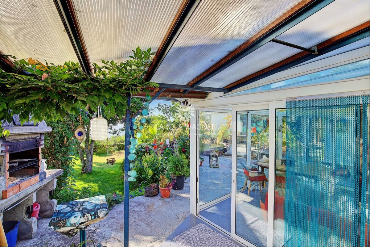 Maison de plain pied d’env. 200 m² de surface construite : Séjour, Cuisine, Salle à manger avec terrasse vitrée, 4 chambres, 1 sdb/wc, 1 sde/wc, Débarras. Grande terrasse avec belles vues.