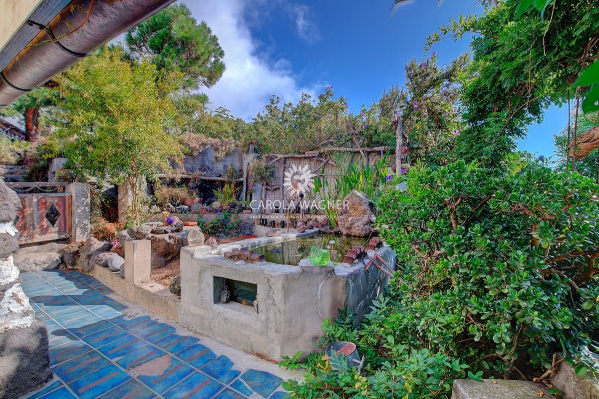 ÉTAT GÉNÉRAL: En bon état. MATERIAUX DE CONSTRUCTION :Logement principal: Style canarien, En partie, toits canariens apparents, Murs extérieurs en pierre naturelle crépis, Menuiseries en bois et alu, planchers en bois et sols en grès. Maison en bois: Toit à pignons, Plafonds intérieurs et planchers en bois. PRESTATIONS: Chauffage électrique, Cheminée, eau chaude par Capteurs solaires et électrique, Électricité par panneaux photovoltaïque, eau de ville et d’irrigation,TV/SAT, Internet par fibre optique. INVENTAIRE : Mobilier partiellement inclus.TERRAIN: env. 3.982 m² avec magnifique étang ornemental et vue sur la mer et les montagne. À env. 630 m d’altitude, en Zone rurale, pourtant emplacement central.Réparti sur plusieurs niveaux, Terre fertile, Arbres et plantes ornementales, De nombreux arbres fruitiers, Plantes subtropicales, Palmiers, Fleurs.