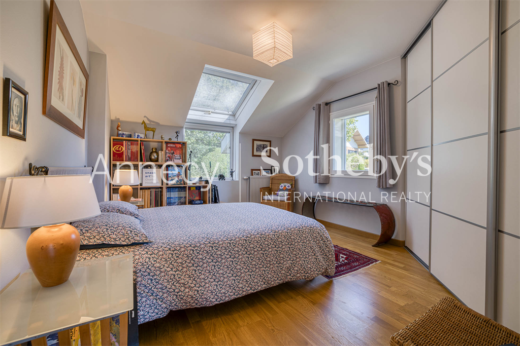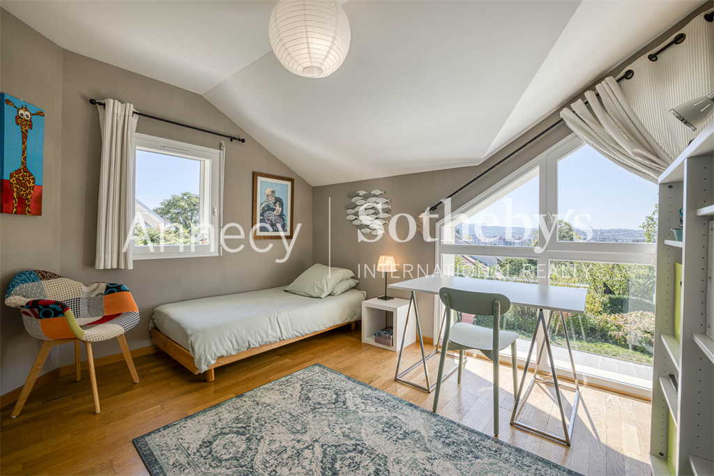 ANNECY SOTHEBY’S INTERNATIONAL REALTY vous propose une lumineuse villa de 208 m² habitables, située au chef-lieu d’Annecy-le-Vieux, dans une impasse sécurisée, calme et recherchée. Elle bénéficie d’une position dominante avec une belle vue dégagée sur Annecy.