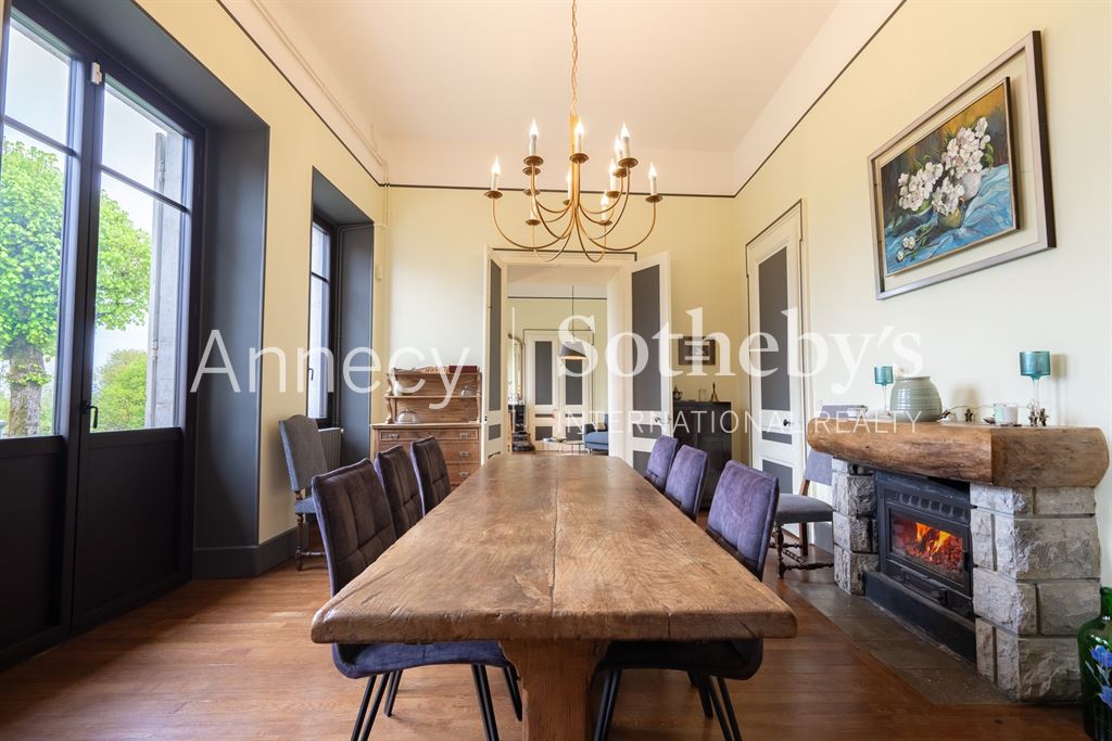 ANNECY SOTHEBY’S INTERNATIONAL REALTY vous propose, dans un écrin de nature préservée où le calme s’impose comme un art de vivre, cette propriété singulière qui se distingue par son authenticité, la noblesse de son architecture et la majesté de ses perspectives sur les massifs environnants.