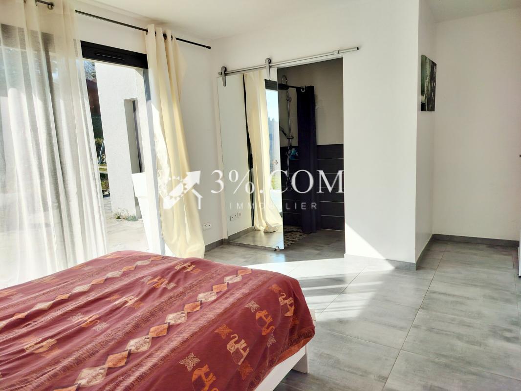 3%.COM CHAMPIS (07) Découvrez cette très belle villa contemporaine de 2016 sur sa parcelle arborée de 916m2 dans un quartier calme et seulement à deux minutes du centre village d’Alboussière. Elle dispose d’une surface habitable de 114 m2 avec une cuisine entièrement équipée ouverte sur le salon séjour offrant 55m2 ouverts sur la terrasse au sud apportant une belle luminosité, de 3 chambres de 11,1 11,3 et 16,8 m2 pour la suite parentale avec salle d’eau, d’une salle de bain avec meuble double vasque de 6,6m2. Un bureau de 8,45m2 complète les volumes habitables de plain pied. Cette maison récente est très bien entretenue à l’extérieur comme à l’intérieur.Elle est construite en briques mono-mur isolées et toiture plate isolée et végétalisée avec récupération des eaux pluviales. Elle est équipée d’une pompe à chaleur air/eau produisant le chauffage au sol. Un poêle à bois de 7kw en complément est installé dans la pièce principale. Les menuiseries sont toutes en double vitrage épais, équipées de volets roulants électriques. Une grande terrasse de 50 m2 offre une vue dégagée au Sud – Est puis un bel espace potager en fond de parcelle. Un garage de 24m2 avec portail motorisé + abri-voiture de 15m2 communique avec une buanderie d’environ 9 m2. La maison est bâtie sur un vide-sanitaire complet proposant environ 60m2 de volume utile ( cave et stockage ). La maison est raccordée au tout à l’égout et à la fibre. Sa situation au calme et à proximité de tous services en feront un lieu de vie idéal. — Distances: Alboussière : 5 minutes Saint-Péray : 20 minutes Valence et autoroute : 25 minutes — Contactez Sébastien MORFIN, agent commercial en immobilier RSAC AUBENAS898 552 641 au 06 75 23 77 52 Les informations sur les risques auxquels ce bien est exposé sont disponibles sur le site Géorisques : www.georisques.gouv.fr – Annonce rédigée et publiée par un Agent Mandataire –