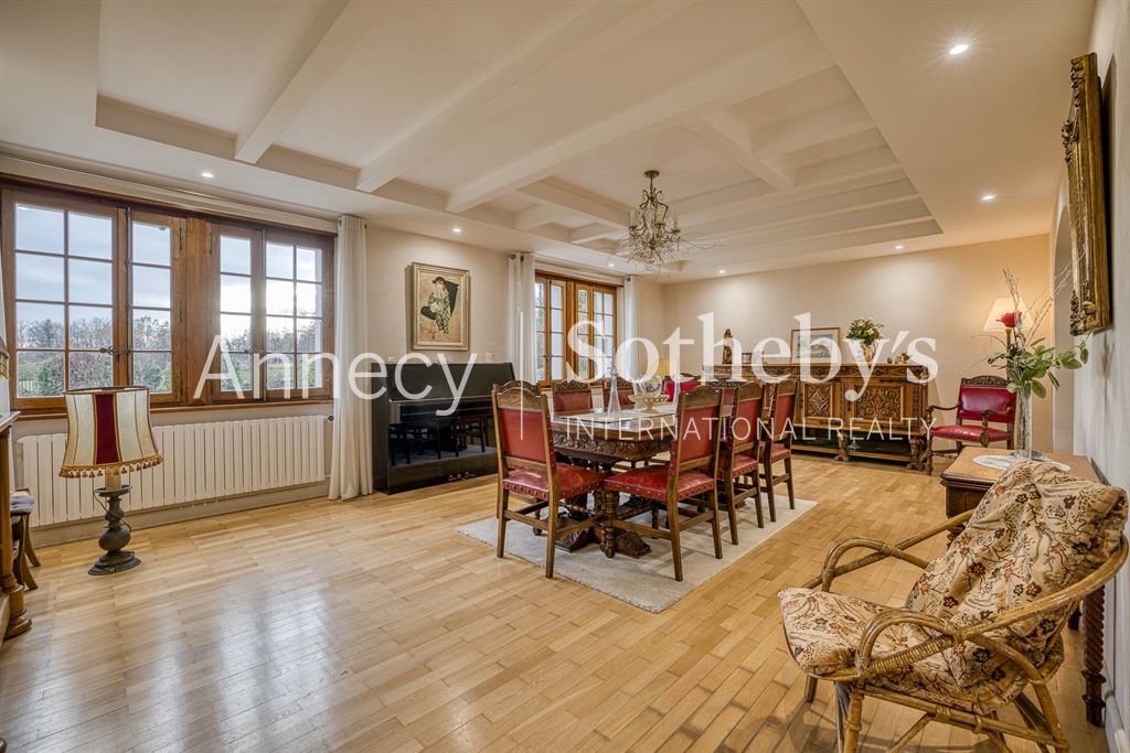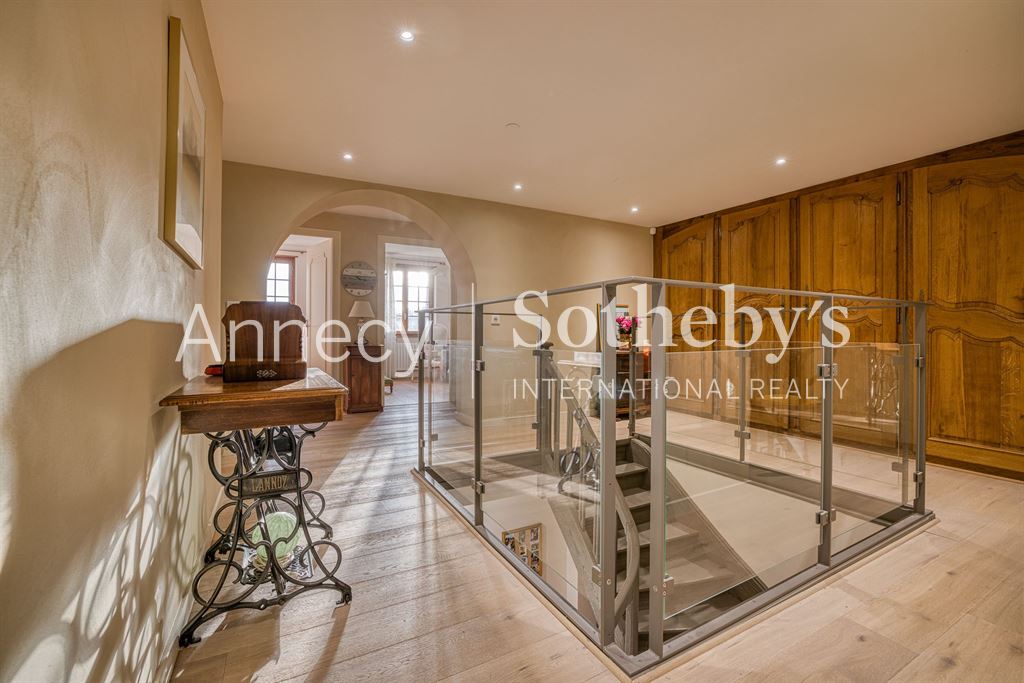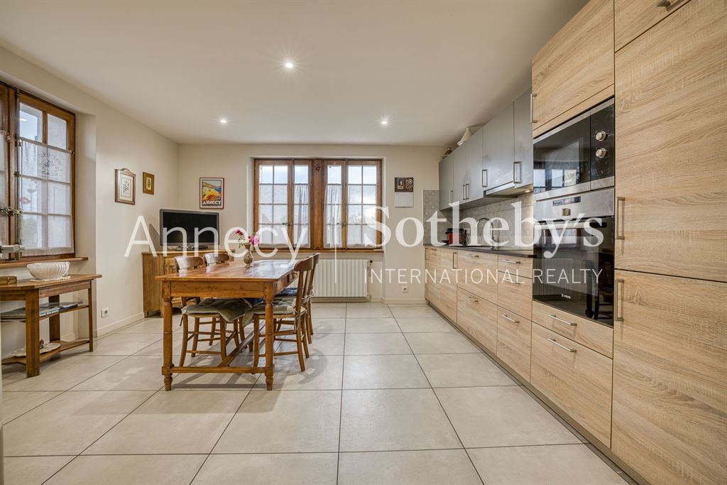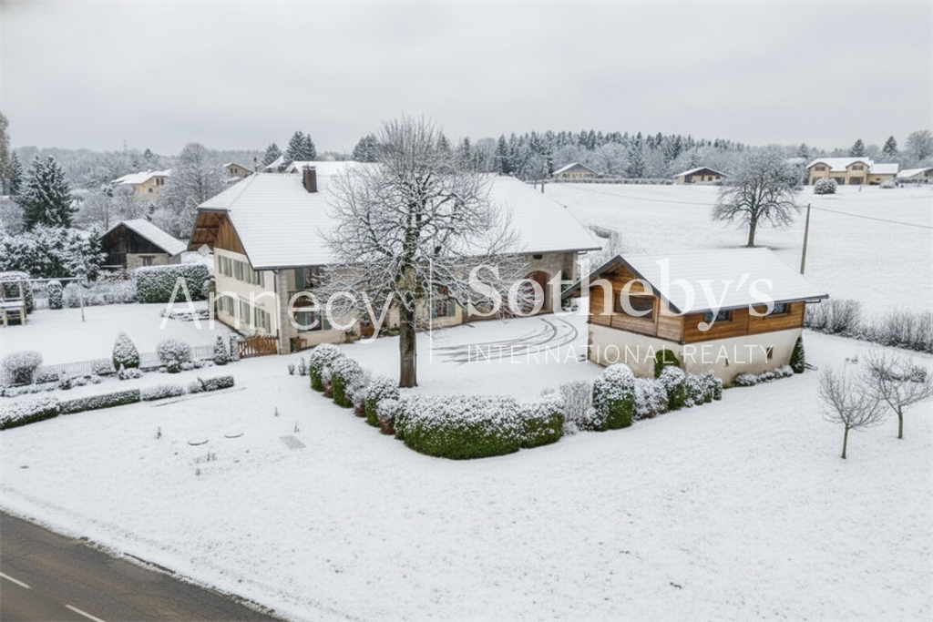 ANNECY SOTHEBY’S INTERNATIONAL REALTY vous propose cette propriété rare avec un grand potentiel de développement : une ancienne ferme rénovée de 215 m² habitables, accompagnée de plus de 500 m² de surfaces annexes aménageables. Située à Étaux, sur l’axe Annecy (20 minutes) – Genève (25 minutes), elle bénéficie d’un cadre champêtre tout en étant proche des agglomérations.