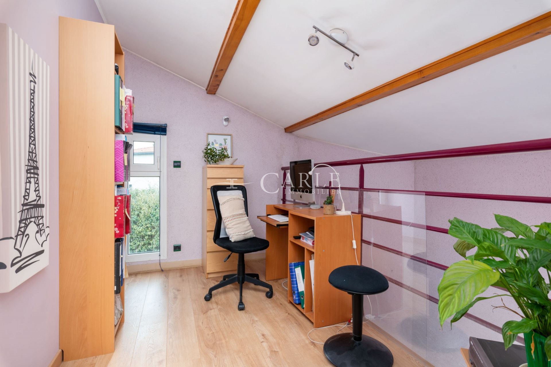 Un grand escalier central dessert l’étage où vous profiterez d’une suite parentale avec dressing et salle d’eau, d’un salon bureau ouvert sur le séjour et les mezzanines des 2 chambres en duplex.