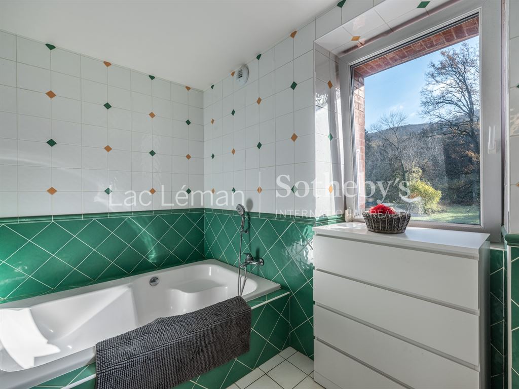 Les points forts de cette propriété sont nombreux : une surface habitable de 275 m², un terrain de 2 hectares avec bois et prés, 7 pièces dont 5 chambres spacieuses, un grand salon et un espace de réception lumineux, ainsi qu’une tour offrant une vue à couper le souffle sur le lac Léman et les montagnes jurassiennes. De plus, la dépendance vous offre la possibilité de réaliser vos projets personnels en toute liberté.
