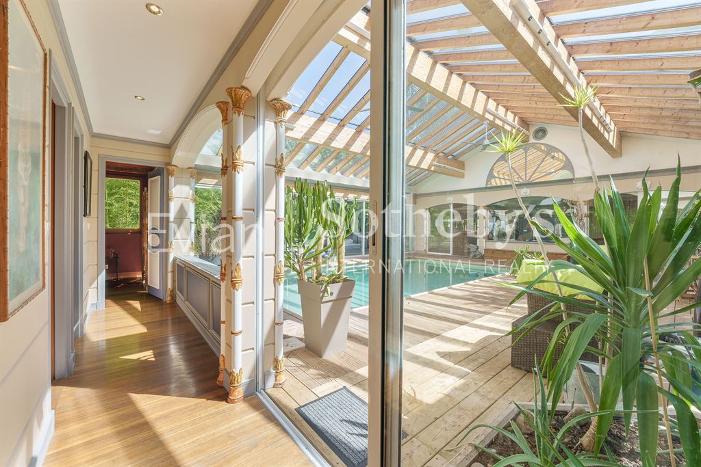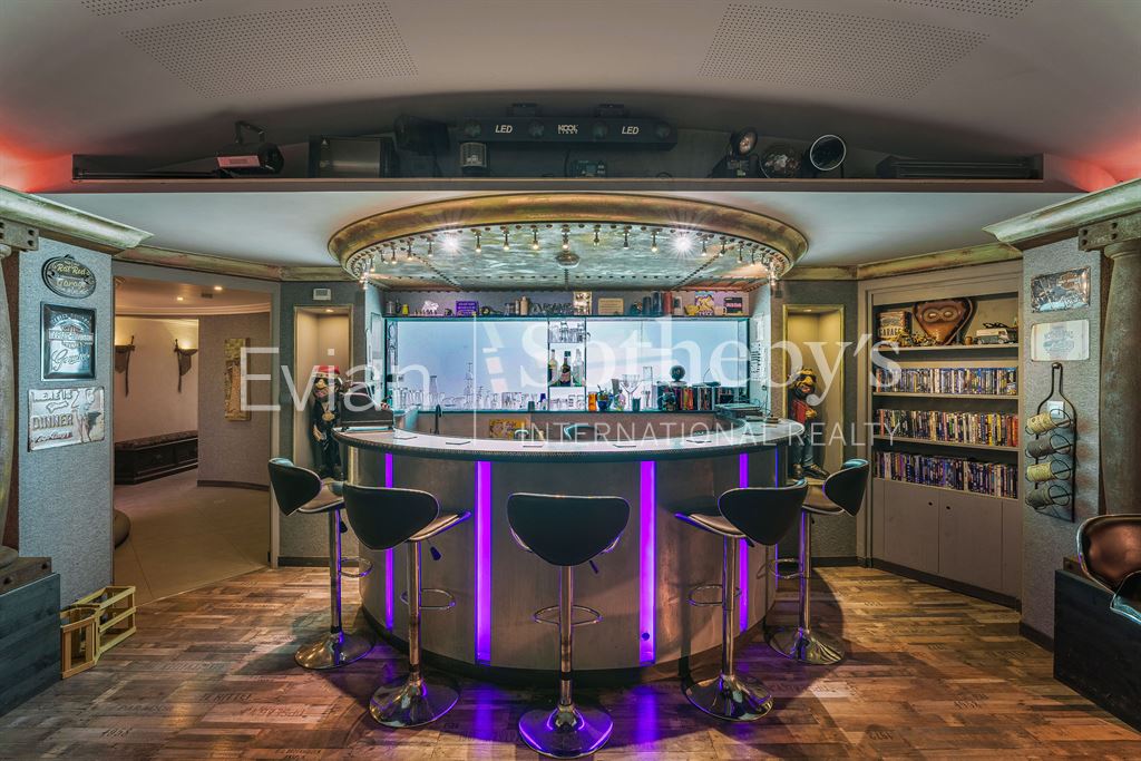 EVIAN SOTHEBY’S INTERNATIONAL REALTY vous propose : Maison d’environ 307 m2 hab + 60 m2 utile + 135 hors loi carrez sur 11 000 m2 de terrain (non constructible). Comprenant : une entrée, une cuisine équipée ouverte sur séjour avec accès terrasse (200 m2) et piscine, une grande chambre ou bureau à l’étage. Au niveau inférieur : une grande pièce : avec un coin cinéma, billard, bar et piste de danse, un débarras, une cave à vins, un WC, une salle d’eau, un local technique et une buanderie. A la suite, un garage, un grand atelier et deux pièces de stockage.