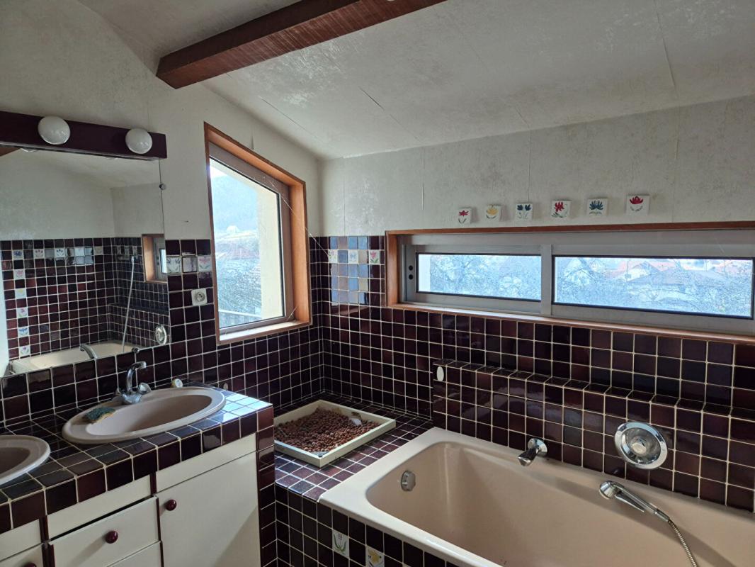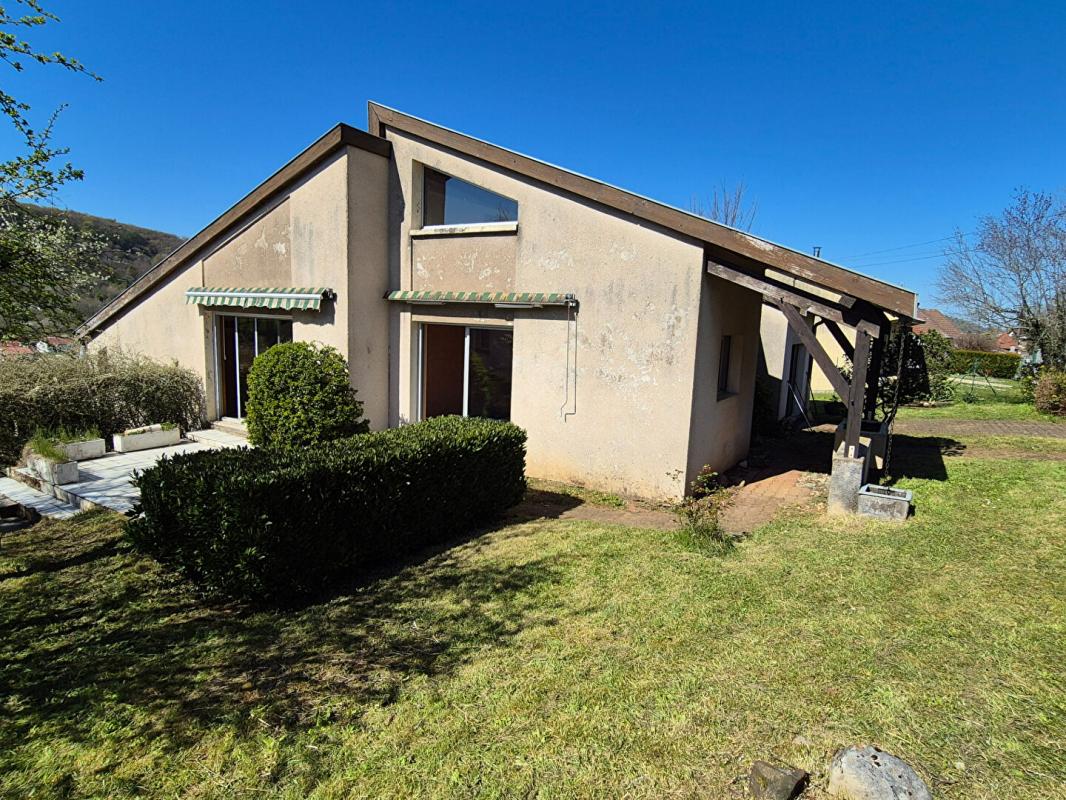 Laissez-vous séduire par cette Maison d’architecte des années 80 de 138 m2 sur 13.97 ares de terrain comprenant : L’entrée avec accès au garage, dressing, cuisine intégrée donnant sur sa terrasse plein sud, séjour salon avec terrasse et balcon, toilettes, dégagement avec placards, et une chambre. Au niveau inférieur une 2ème chambre, un dégagement avec placards et la salle de bains. Au sous-sol, une 3ème chambre, une cuisine d’été avec accès au jardin, un grand atelier, un wc, la chaufferie et une grande cave. Le garage de plain-pied permet d’accéder aux combles et à la mezzanine avec vue sur le séjour-salon. Il est possible d’y aménager un bureau ou une salle de jeux. Le terrain arboré de fruitiers permet d’y prévoir un jardin ou d’y stocker du matériel dans son abri. Les huisseries sont en alu double vitrage, avec volets électriques dans certaines pièces. Le chauffage est au fioul, et une cheminée avec insert permet des veillées au coin du feu dès les premiers frimas. Les informations sur les risques auxquels ce bien est exposé sont disponibles sur le site Géorisques.