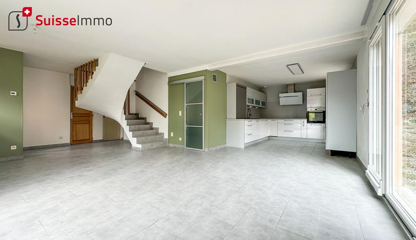 Glay – Exclusivité Suisse Immo Maison de 2009, 6 pièces d’environ 133 m2 au sol (environ 118 en habitables) sur 2483 m2 de terrain. Les +: – Construction récente – DPE C – Superficie du terrain – 4 chambres dont une suite parentale Elle se compose de la façon suivante: Au RdC: – Garage, cuisine équipée ouverte sur le séjour ( 47,54 m2) , une suite parentale à terminer 19,29 m2), toilettes. A l’étage: 3 chambres ( 12,17 – 16 et 13,58 m2) et une salle de bains D’un point de vue technique, chauffage électrique au sol, fenêtres PVC double vitrage. Des rafraichissements et quelques finitions seront à prévoir. Un dégât des eaux est en cours et sera refait pour la vente