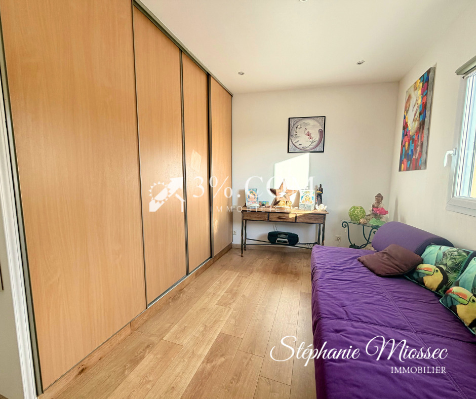 Située au calme, dans le quartier recherché de Saint-Hervé à Ploufragan, cette maison contemporaine de 2007, entièrement de plain-pied, offre un cadre de vie pratique et chaleureux, adapté aussi bien à une activité professionnelle à domicile qu’à une vie de famille. Elle se compose d’une grande pièce de vie lumineuse avec cuisine aménagée et équipée, de trois chambres et d’une salle d’eau. L’une d’elles bénéficie d’un accès direct à l’extérieur et d’une salle d’eau avec WC privatifs : un atout idéal pour une activité de bien-être, psychologue, coach ou toute profession libérale. Cette pièce peut également servir de suite parentale, offrant un espace indépendant et confortable pour une famille. Les deux autres chambres disposent quant à elles d’un dressing et d’un grand placard. Une arrière-cuisine / buanderie complète l’organisation fonctionnelle de la maison. Les extérieurs sont très faciles à entretenir, car il n’y a pas de pelouse, tout en étant agréablement arborés. La cour goudronnée permet de stationner plusieurs véhicules, ce qui est idéal pour une patientèle ou une famille. Une grande terrasse avec vue dégagée, un carport, un chalet bois de 9 m2 et un portail électrique viennent compléter cet ensemble soigné. Côté confort, la maison offre un chauffage électrique complété par un poêle à granulés, ainsi que la fibre optique pour un usage professionnel ou familial optimal. Les honoraires sont à la charge de l’acquéreur. Pour découvrir cette maison, contactez votre conseillère, Stéphanie MIOSSEC EI au 07 81 57 59 65 – RSAC de St Brieuc no 877 562 496 – 3%.COM immobilier : réseau national à honoraires réduits à 3% TTC – Les informations sur les risques auxquels ce bien est exposé sont disponibles sur le site Géorisques : www.georisques.gouv.fr – Annonce rédigée et publiée par un Agent Mandataire –