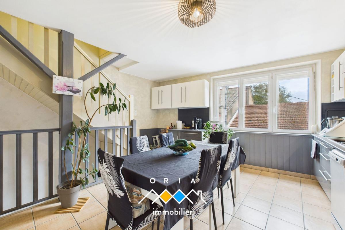À Bayonville-sur-Mad, charmant village niché au cœur de la vallée du Rupt de Mad, découvrez cette maison mitoyenne pleine de potentiel. Développée sur trois niveaux et d’une surface d’environ 85 m² habitables, elle se situe dans une petite rue calme, à seulement 10 minutes de Pagny-sur-Moselle. Un cadre de vie paisible et recherché, à mi-chemin entre Metz et Nancy. Le rez-de-chaussée accueille une entrée principale menant à un séjour, réchauffé par un poêle à granulés récent (2020), créant une atmosphère conviviale et agréable. Ce niveau dispose également d’un débarras pratique pour le rangement. Le premier étage propose un palier desservant une cuisine indépendante avec coin repas, idéale pour partager des moments conviviaux, ainsi qu’une salle de bains et des WC séparés. Au deuxième étage, deux chambres confortables et un palier avec rangement complètent l’ensemble. Les combles, accessibles, offrent un espace de stockage supplémentaire, tandis qu’une cave en sous-sol permet un rangement fonctionnel. Également, un jardin non attenant d’environ 810 m² offre un bel espace de verdure. En pente au départ puis plat sur la partie haute, il se prête aisément à l’aménagement d’un potager, d’un coin détente ou d’un espace de loisirs avec une jolie vue sur la vallée. Côté prestations, la maison dispose de menuiseries en PVC double vitrage, d’un chauffage combinant poêle à granulés et radiateurs électriques à inertie, ainsi que d’un ballon d’eau chaude de 200 L. Le bien est raccordé au tout-à-l’égout et à la fibre optique. Bien entretenue, cette maison offre un agencement fonctionnel et un bon confort de vie. Elle conserve le charme de l’ancien tout en constituant une belle opportunité pour un premier achat ou un projet locatif, alliant budget accessible et cadre calme dans un environnement prisé. Bayonville-sur-Mad bénéficie d’une localisation privilégiée : l’école du Val-de-Mad se trouve à proximité, la gare de Pagny-sur-Moselle à seulement 10 minutes, et la zone commerciale d’Augny à moins de 15 minutes. Un emplacement idéal pour concilier vie au vert et commodités du quotidien. Une maison pratique et chaleureuse, parfaite pour un premier achat ou un investissement au cœur de la vallée du Mad. Les informations sur les risques auxquels ce bien est exposé sont disponibles sur le site Géorisque : https://www.georisque.gouv.fr La présente annonce immobilière est présentée par Jimmy MARQUET EI – Numéro RSAC : NANCY 442051884, agent commercial de la SARL ORIA Immobilier.