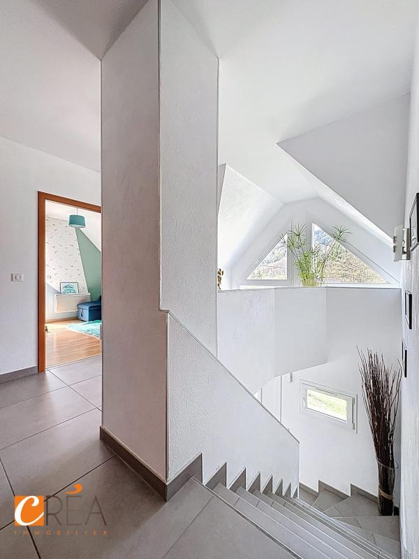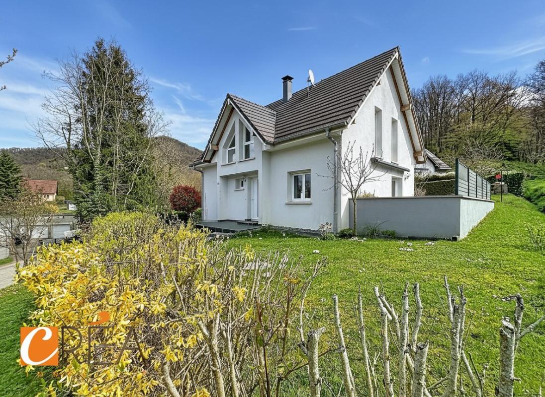 Située sur les hauteurs de Bitschwiller-lès-Thann, dans un environnement particulièrement recherché, cette maison individuelle construite en 2006 développe environ 110 m² habitables sur un terrain de 6,88 ares, offrant un cadre de vie à la fois paisible et privilégié. Dès l’entrée, vous découvrirez un espace de vie lumineux, ouvert sur la cuisine, avec un accès direct à une magnifique terrasse de 70 m², véritable pièce de vie supplémentaire. Cet espace extérieur, parfaitement aménagé, bénéficie d’une belle vue dégagée et d’une ambiance bucolique particulièrement agréable au quotidien. Le rez-de-chaussée propose également une chambre ainsi qu’un WC indépendant. À l’étage, trois chambres et une salle de bains complètent l’espace nuit, offrant une configuration idéale avec quatre chambres au total, parfaitement adaptée à une vie de famille. Le sous-sol complet avec garage apporte un confort appréciable en matière de stationnement et de rangement, renforcé par une grande cour extérieure. Les extérieurs, soigneusement aménagés et paysagés, témoignent d’un entretien rigoureux et d’un véritable souci du détail, avec un terrain légèrement en pente qui apporte du charme sans contrainte majeure. Sur le plan technique, la maison est saine et bien entretenue. Le chauffage electrique au sol est complétée par un poêle scandinave Tulikivi, reconnu pour sa performance et son confort thermique. Ce système permet de bénéficier d’une chaleur douce et homogène tout en maîtrisant efficacement les coûts de chauffage à l’année. L’isolation intérieure ainsi que les menuiseries PVC double vitrage viennent compléter cet ensemble cohérent. Une maison fonctionnelle, parfaitement entretenue et chaleureuse, qui séduira les acquéreurs en quête de calme, de vue et de qualité de vie, dans un cadre naturel privilégié. Honoraires inclus de 4.17% TTC à la charge de l’acquéreur. Prix hors honoraires 360 000 €. DPE en cours. Les informations sur les risques auxquels ce bien est exposé sont disponibles sur le site Géorisques : georisques.gouv.fr.