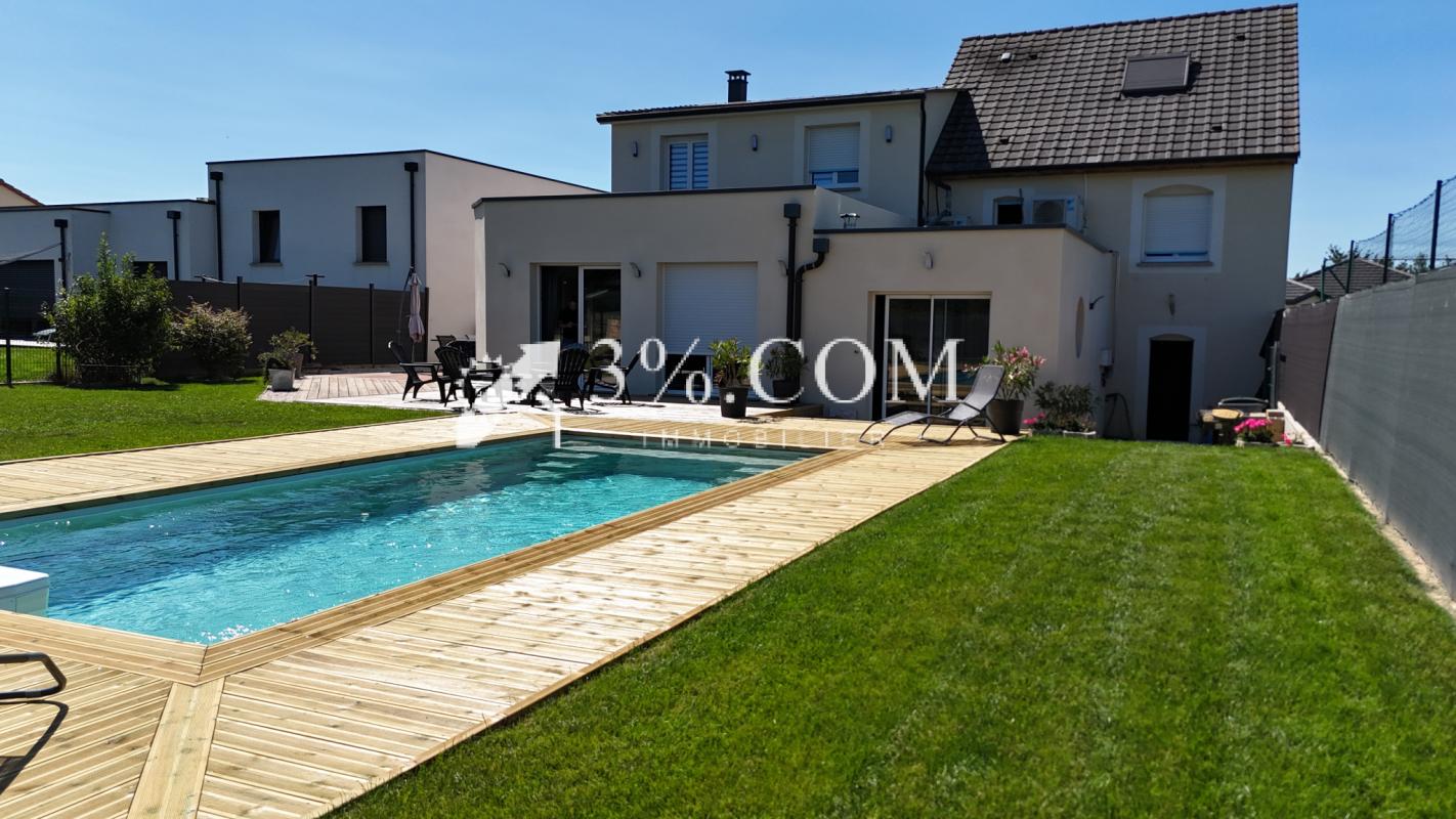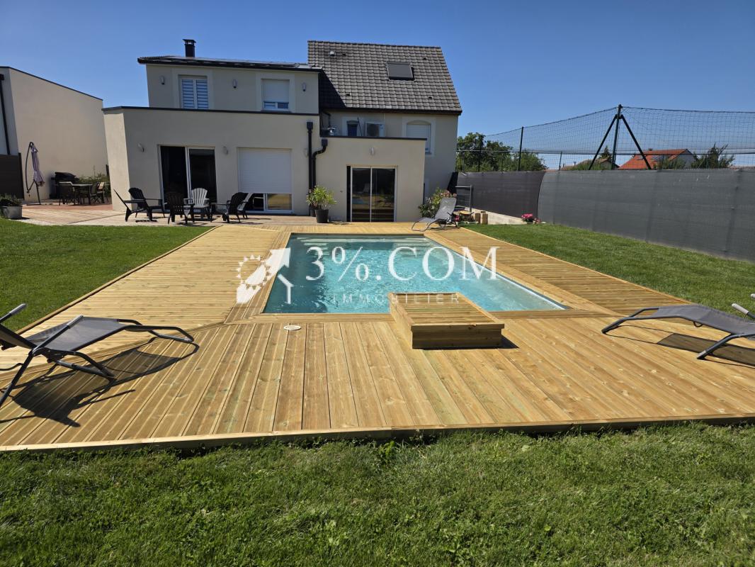 L’agence 3%.com vous propose cette très belle maison individuelle, à proximité des commerces, écoles, transports, autoroute…. alliant charme, fonctionnalité, luminosité, et espace détente. Elle a tout pour vous séduire !!! Description : Elle se compose de 3 demi-niveaux : – REZ DE CHAUSSEE : – Grande cuisine américaine équipée, très moderne, ouverte sur un salon lumineux, de 50 m2 La cuisine se compose d’une plaque de cuisson à induction, cafetière intégrée, micro-onde intégré, lave-vaisselle intégré, d’un îlot central avec multiples rangements et cave à vin. – Le salon est chaleureux et comporte un poële mixte bois/pellet pour vos belles soirées d’hiver devant la télé. – Le séjour de 33 m2 communiquant avec la cuisine vous séduira avec ses 3 grandes baies vitrées (accès et vue jardin piscine) et un joli puit de lumière pour agrémenter vos repas festifs en famille ou entre amis. – Une très belle pièce (20 m2) avec un SPA 6 personnes (jeu de lumière au plafond) est accessible depuis le séjour ou l’extérieur – détente assurée Depuis le rez-de-chaussée vous aurez un accès au garage traversant, à une buanderie, et à un WC. – 1ER DEMI NIVEAU : – 2 chambres avec placards de 15 m2 et 10,7 m2 – 1 bureau de 10 m2 – 1 salle de bain (douche + baignoire, double vasque) de 7,5 m2 – 2EME DEMI NIVEAU : – 1 magnifique chambre parentale de 40 m2 avec douche, double vasque, dressing, et porte-fenêtre donnant accès sur un toit terrasse ( à aménager) de 28 m2 avec vue dégagée – 1 wc – 3EME DEMI NIVEAU : – 1 chambre parentale de 21 m2 avec douche, simple vasque, dressing Cette belle maison se trouve sur un terrain de 763 m2, arboré, cloturé, comprenant une piscine enterrée de 3×7 m, chauffée par une pompe à chaleur Equipements de la maison : poêle mixte (bois et pellet) climatisation réversible sur toute la maison chauffage au sol dans certaines pièces de la maison équipée de 20 panneaux solaires (9 kw) 2 places de parking en plus devant la maison volets électriques, double vitrage N’hésitez pas à venir découvrir cette maison d’exception, qui ne pourra que vous ravir de part ses nombreux équipements, son ensoleillement, et sa tranquillité dans un quartier très calme. DPE : B ; GES : A Votre contact : Mr Raphael BOEHLER, agent mandataire RSAC 507461754 Nancy 06.30.10.77.10 les informations sur les risques liés à ce bien sont disponibles sur le site georisques – Annonce rédigée et publiée par un Agent Mandataire –