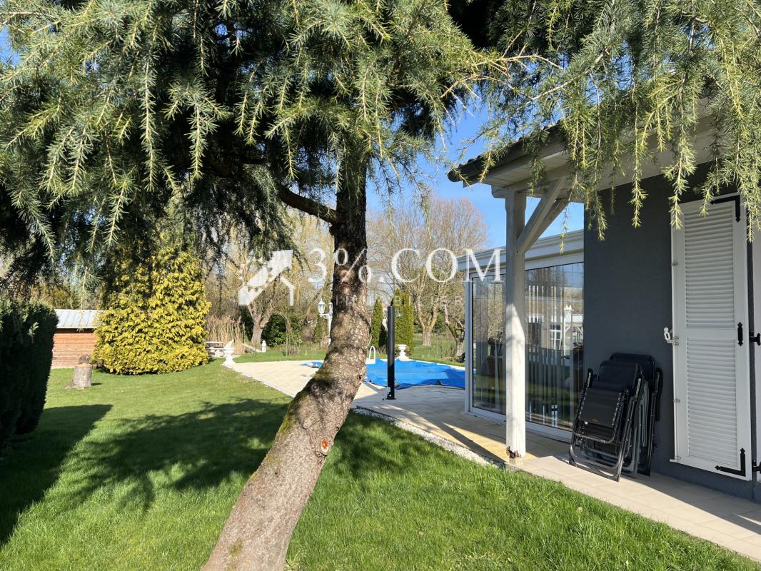 EXCLUSIVITE Propriété d’exception Élégance et sérénité à Lunéville 54300 3% .Com, M.Mansuy vous propose dans l’un des secteurs résidentiels les plus prisés de Lunéville, découvrez cette propriété rare offrant un cadre de vie privilégié, à l’abri des regards, au coeur d’un environnement verdoyant et parfaitement entretenu. Édifiée de plain-pied, cette maison développe environ 90 m2 et s’ouvre sur un superbe parc arboré de 1 200 m2, véritable écrin de nature invitant à la détente. À l’extérieur, chaque espace a été pensé pour le bien-être : Élégante piscine chauffée Desjoyaux, idéale pour prolonger les belles journées d’été Charmant étang privé d’environ 100 m2, apportant une atmosphère bucolique unique Chalet indépendant dédié au rangement du matériel de jardin Absence totale de vis-à-vis pour une intimité absolue Un intérieur chaleureux et lumineux L’espace de vie principal séduit par sa convivialité et sa luminosité : Salon et salle à manger ouverts sur la cuisine Deux vérandas (environ 20 m2 et 25 m2) prolongeant harmonieusement les espaces de réception et offrant une vue apaisante sur le jardin Trois chambres confortables Salle de bain avec douche Deux WC Les prestations viennent compléter l’ensemble : Garage motorisé Sous-sol / vide sanitaire Chauffage électrique complété par un poêle à pellets, pour une ambiance chaleureuse et économique Fenêtres récentes (2022) équipées de volets roulants solaires Cette propriété conjugue confort, nature et intimité, à quelques minutes des commodités. Un bien rare sur le marché, idéal pour une clientèle en quête de tranquillité et de qualité de vie. Prix : 319 000 EUR Honoraires d’agence inclus Votre contact : M.Mansuy (EI) Agent Mandataire RSAC 8838 197 515 Tél : 06.23.96.64.35 Les informations sur les risques auxquels ce bien est exposé sont disponibles sur le site Géorisques : www.georisques.gouv.fr – Annonce rédigée et publiée par un Agent Mandataire –