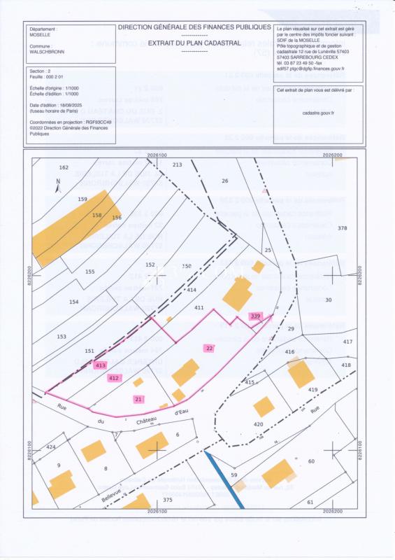 EXCLUSIVITE 3%.COM Immobilier – Th. MELIGNON VISITE VIRTUELLE DISPONIBLE POUR CE BIEN ! Sur les hauteurs de WALSCHBRONN (57720), au coeur du parc naturel régional des Vosges du Nord et proche de la frontière allemande : Maison individuelle (1971) d’env. 140 m2 hab. offrant 7 pièces (dont 4 chambres), sur un grand terrain d’env. 3 800 m2, partiellement clôturé. Vous profiterez également de 3 terrasses (donc 2 couvertes) et de diverses dépendances. Les ‘PLUS’ de ce bien : – Emplacement : proche de la frontière allemande, sur les hauteurs du village, offrant une vue imprenable. – Les 3 terrasses et les nombreuses dépendances, notamment un ‘chalet’ de style bavarois où vous pourrez recevoir vos invités dans une ambiance chaleureuse, – Grand terrain partiellement clôturé, * Rez-de-chaussée : – Couloir, – Salle d’eau : vasque, douche et WC, – Salle à manger, – Cuisine séparée et équipée, – Séjour (23 m2) avec poêle à bois, niche avec coin bureau avec accès à une terrasse, – Grande terrasse avec vue sur le village, – 1 chambre (16m2), – 1 débarras (avec préparation pour l’installation d’une douche) – Dégagement avec un accès vers l’extérieur. * ETAGE : – 1 suite parentale avec penderie murale et SDB privative (baignoire d’angle, vasque, WC, sèche-serviette et chauffage électrique), – 1 pièce de 20 m2, – 1 chambre avec poêle à bois donnant accès à une grande terrasse (30 m2) avec store-banne. * SOUS-SOL / COMBLES : – 1 chambre (20m2), – Buanderie, – Chaufferie (conduit tubé), – Cuves à fioul (2 x 1 500l). – Vide sanitaire abritant le chauffe-eau électrique. * DEPENDANCES : Plusieurs dépendances non attenantes : – magnifique chalet de 30 m2 d’une capacité d’au moins 12 convives, cheminée avec insert et bar, – atelier, – abri de jardin en tôle (matériel de jardinage), – Garage avec partie atelier, – 2 abris de jardin (en mauvais état). * EXTERIEUR : – 1 accès voiture à chaque extrémité de la propriété, – Grand terrain en herbe avec quelques arbres, – Nombreux emplacements de parking. * DIVERS : Menuiseries : PVC/simple, double ou triple vitrage, Assainissement individuel (non conforme), Chauffage : chaudière fioul, Eau chaude : ballon électrique 150 l, INTERNET : fibre optique (TUBEO) Taxe foncière (2025) : 1 511,- EUR (dont 500,- EUR de ‘taxe ordures ménagères’ qui sera perçue séparément en 2026), Proche de la frontière allemande, WALSCHBRONN est situé à 15 km de Bitche, 20 km de Pirmasens (D), 25 km de Deux-Ponts / Zweibrücken (D), 40 km de Niederbronn et de Sarreguemines. Ich spreche Deutsch / I speak english. Pour tous renseignements ou pour visiter, contacter : Thierry MELIGNON au 07 84 97 62 63 Agent commercial en immobilier – RSAC Sarreguemines 794 871 277 3%.COM Immobilier – Réseau national à honoraires réduits : 3% TTC Les informations sur les risques auxquels ce bien est exposé sont disponibles sur le site Géorisques : www.georisques.gouv.fr – Annonce rédigée et publiée par un Agent Mandataire –