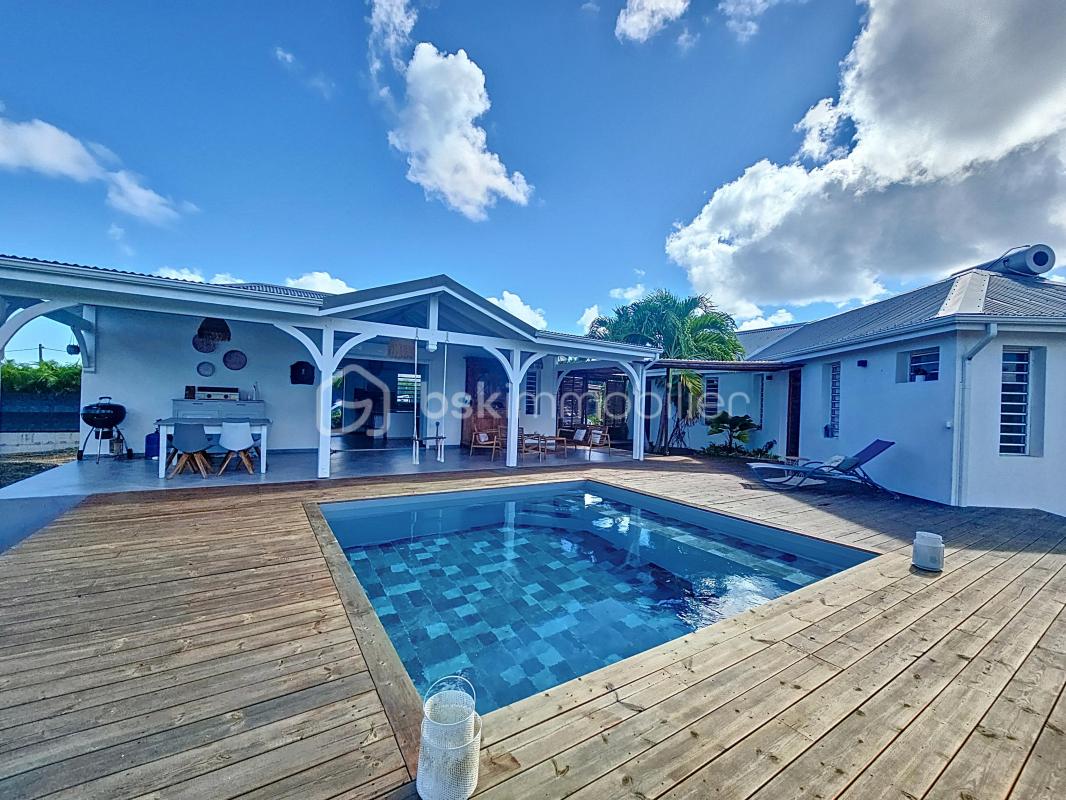 Coup de coeur assuré pour cette villa contemporaine offrant de beaux volumes d’une surface habitable de 119 m² (surface utile 160 m²) édifiée de plain-pied sur une parcelle de 1543 m². À seulement 5 minutes des commodités du centre-ville et de la plage des Raisins Clairs, au calme elle bénéficie d’un environnement idéal. De construction atypique, elle se compose de 3 modules : le premier est un espace pièce à vivre de 40 m² avec son grand salon et sa cuisine ouverte équipée moderne, un toilette invité, un cellier extérieur. Empruntez le patio et vous accédez au second module offrant deux grandes suites parentales climatisées avec douche à l’italienne, dressing et toilettes. Enfin, le troisième espace bénéficiant d’une vue directe avec ses baies vitrées sur la piscine est une troisième suite parentale climatisée avec son dressing, sa salle d’eau douche à l’italienne et toilettes. Vous profiterez également d’une grande terrasse et sa piscine au sel de dimension 4×4 (achevée il y a deux ans) avec son liner pierres de Bali. La villa sera cédée avec son mobilier. Ses équipements : citerne tampon 3300 litres, fibre optique, carport pouvant abriter 2 véhicules et assainissement individuel avec conformité. Atout supplémentaire : la bonne implantation de la villa sur la parcelle laisse place à une bande de terrain restante laissant un potentiel de construction additionnel (située en zone U4 du PLU) comme des bungalows. Etiquette énergétique : classe B. Prix du bien : 610 000,00 €. Les honoraires d’agence sont à la charge du vendeur. À propos des performances énergétiques : Date de réalisation du diagnostic énergétique : 20/01/2025. Score DPE : 17 kWhEP/m²/an. Score GES : 14 kgepCO2/m²/an. Montant estimé des dépenses annuelles d’énergie pour un usage standard : entre 1300,00 € et 1500,00 € par an. Prix moyens des énergies indexés sur l’année 2025 (abonnements compris). Les informations sur les risques auxquels ce bien est exposé sont disponibles sur le site Géorisques.