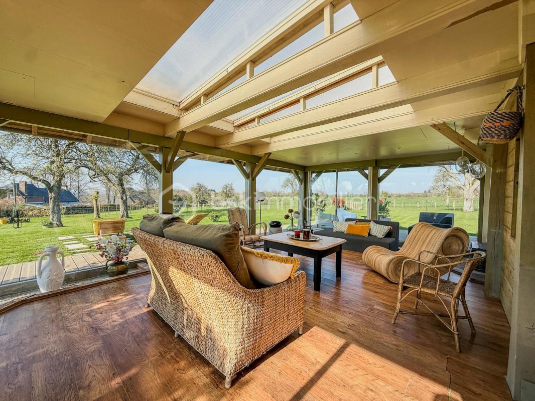 Dès que l’on franchit le portail de cette propriété d’exception, une belle émotion nous envahit. Nichée dans la commune de Fauguernon, intimiste et chargée d’histoire, à seulement 15 kilomètres de Pont-l’Évêque ( Sud-Est ) et à trente minutes de la Côte Fleurie, cette charmante maison normande séduit par ses belles tuiles traditionnelles et son architecture authentique. Implantée sur plus de 3,5 hectares d’herbages de qualité, entièrement clos, électrifiés et dotés d’abris, la propriété bénéficie de deux accès indépendants. Depuis le jardin paysager et les terrasses, la vue panoramique sur la vallée environnante offre un spectacle naturel d’une rare beauté, évoluant au fil des saisons. La maison principale de 178m2 au sol s’ouvre sur une pièce de vie lumineuse et chaleureuse, agrémentée d’un insert. La cuisine aménagée et équipée, signée Howdens, propose un agréable espace dînatoire. Dans son prolongement, un jardin d’hiver vitré de 32m2, idéalement exposé sud-ouest, véritable atout de la maison offre un point de vue exceptionnel sur la vallée et permet de profiter du paysage au fil des saisons, baignée de lumière naturelle. Pensée pour une vie de plain-pied, la maison dispose d’une élégante suite parentale avec rangements sur mesure, salle d’eau attenante et WC. WC indépendant et placards de rangements complètent le niveau. À l’étage, une seconde suite accueille vos invités avec tout le confort attendu : espace nuit chaleureux et salle de bain privative avec WC, offrant intimité. Deux autres chambres viennent compléter ce niveau, accompagnées d’une salle de bain avec WC. Côté dépendances, un préau pouvant servir de bûcher, une grange et un garage avec son atelier offrent des espaces pratiques et polyvalents, pour un total de 100m2 environ. Une autre annexe de 106m2 au sol , actuellement utilisée pour le stockage, propose une entrée, une pièce, un dégagement et un grenier aménageable, offrant la possibilité d’un changement de destination selon vos projets et besoins. À l’extérieur, le parc clos et paysager se prête à toutes les envies de loisirs et de détente. Un terrain de pétanque, un bassin, un potager et un terrain piscinable complètent ce cadre idyllique, La qualité énergétique du bien, reflétée par un excellent DPE, garantit confort et performance tout au long de l’année. Assainissement conforme. Cette annonce référence 325746 vous est présentée par votre agent commercial BSK Immobilier FANNY SCHUTZ (EIRL) immatriculé au RSAC de LISIEUX (14100) sous le numéro 82470116300027. Prix du bien : 890 000,00 € Les honoraires d’agence sont à la charge du vendeur. A propos des performances énergétiques : Date de réalisation du diagnostic énergétique : 16/03/2202 Score DPE : 100 kWhEP/m²/an Score GES : 3 kgepCO2/m²/an Montant estimé des dépenses annuelles d’énergie pour un usage standard : entre 930.00 € et 1320.00 € par an. Prix moyens des énergies indexés sur l’année 2021 (abonnements compris). Les informations sur les risques auxquels ce bien est exposé sont disponibles sur le site Géorisques : www.georisques.gouv.fr