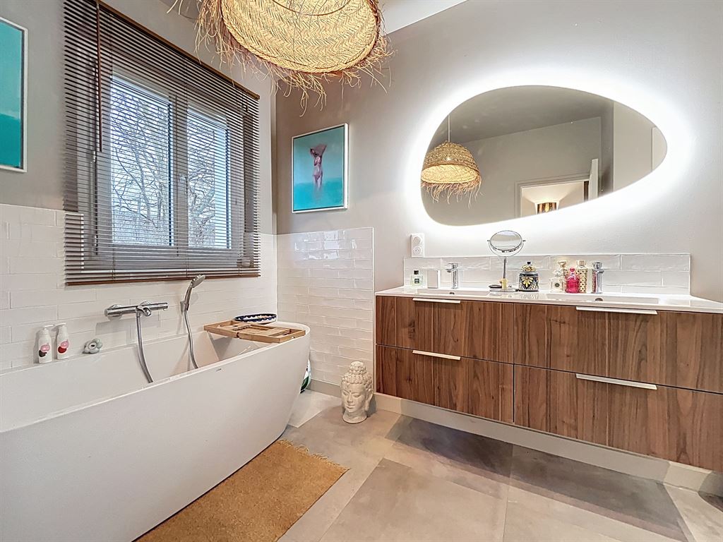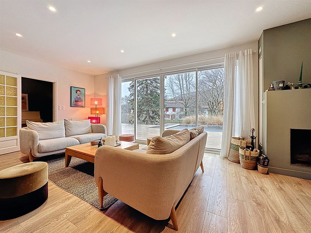 Belle maison familiale de 216m2 édifiée sur un terrain de 2100m² (environ), rénovée en 2021 bénéficiant d’une agréable vue sur la Rhune. Entrée, grand salon séjour contemporain de 77m² (cheminée) et sa cuisine ouverte donnant sur une vaste terrasse de 115m² en communion avec la vue, grande suite parentale équipée d’un dressing, salle de bains et sa douche, un bureau (chambre possible). À l’étage : 4 chambres, salle d’eau, toilettes. Grand sous-sol offrant une buanderie, une cave, et garage. Le jardin dispose de l’agrément d’une piscine chauffée (7 x 4 m), d’un pool house et sa une cuisine d’été.