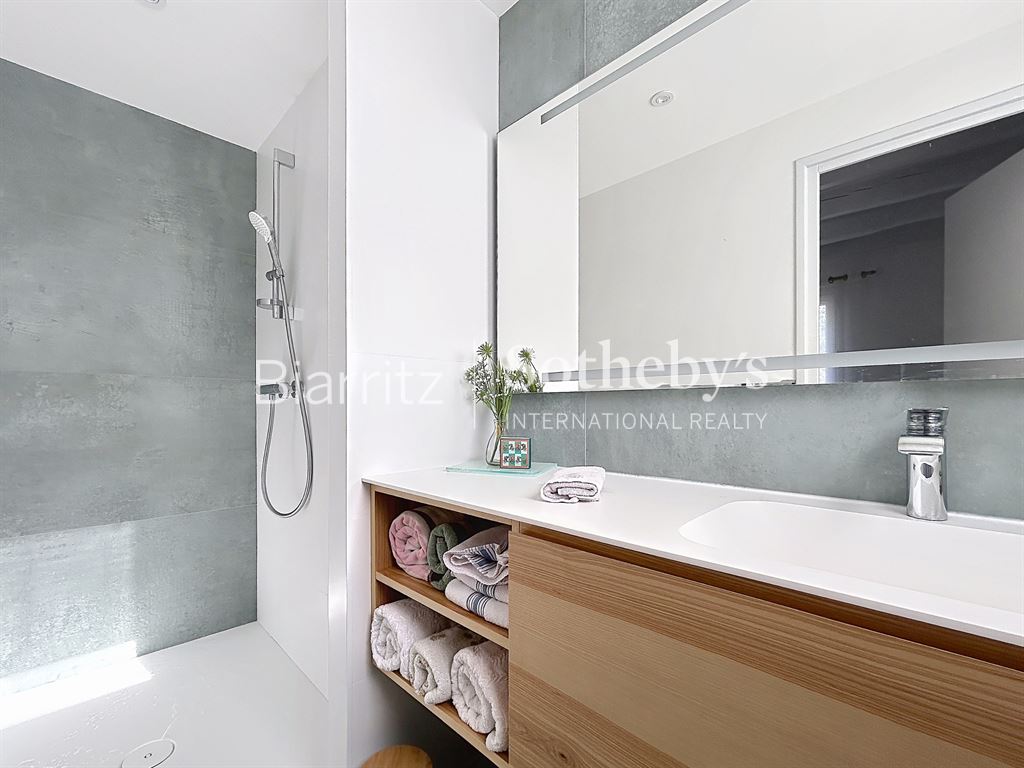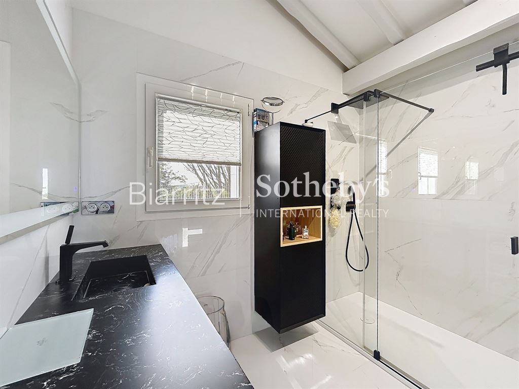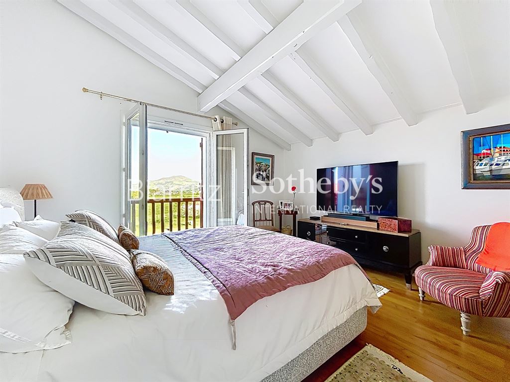 Sur les hauteurs de Larressore, à quelques minutes d’Espelette et 20 min de Biarritz, cette maison basque rénovée de 185 m² offre calme et vue imprenable sur les montagnes. Belle pièce de vie de 70 m² avec cheminée et cuisine sur mesure, 4 chambres dont 2 en rez-de-chaussée, bureau et dressing. Jardin paysager avec piscine, jacuzzi, spa et terrasses.