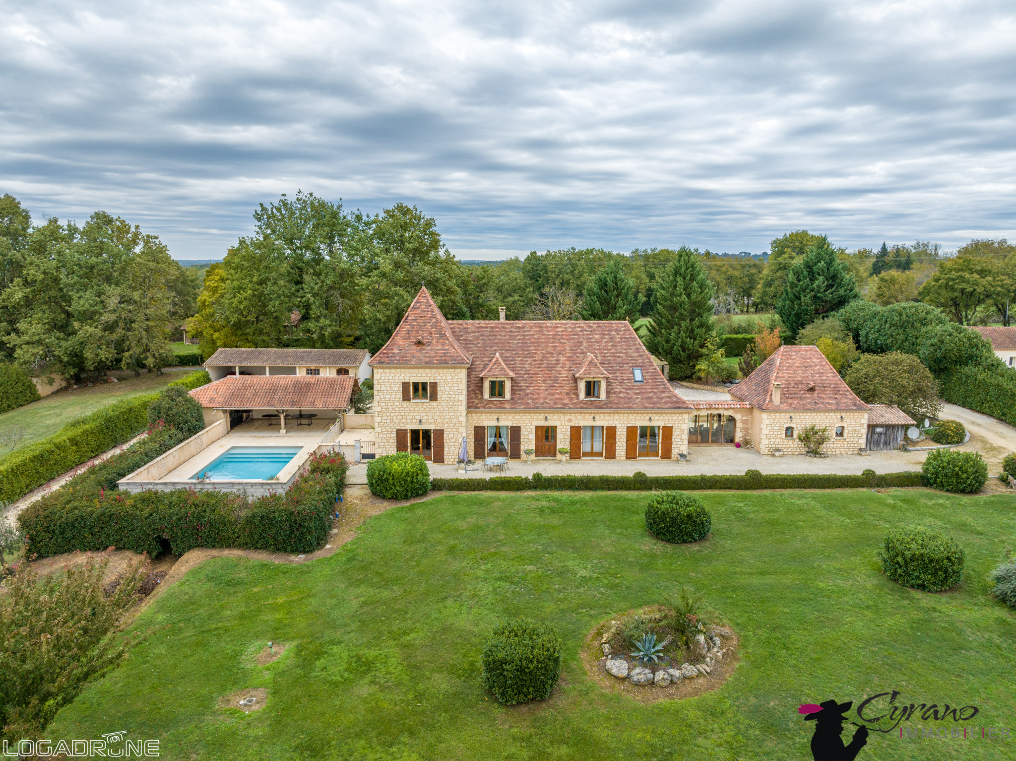 Une dépendance avec 3 places de garage, une salle de jeux , une terrasse couverte de 40 m2, un pigeonnier ou encore un pool house sublime.