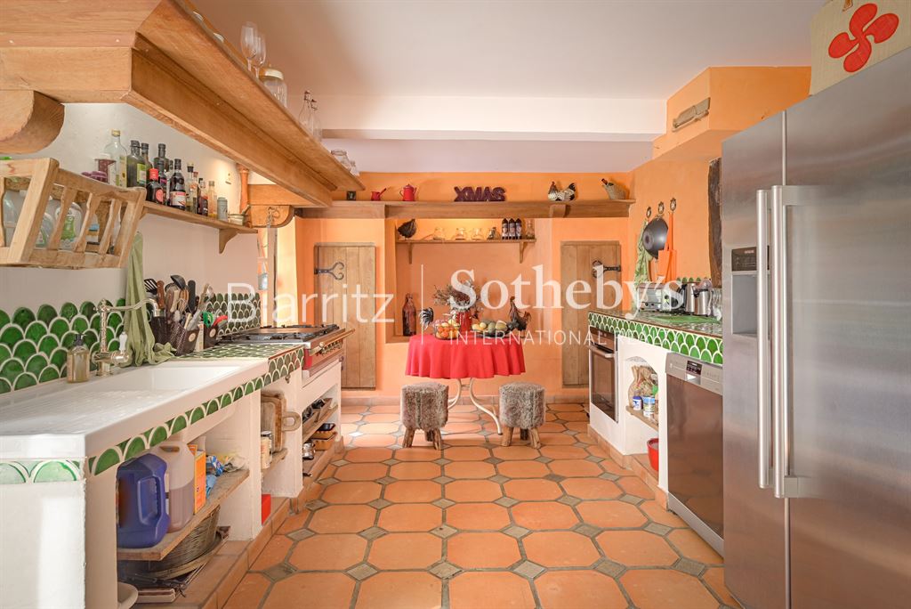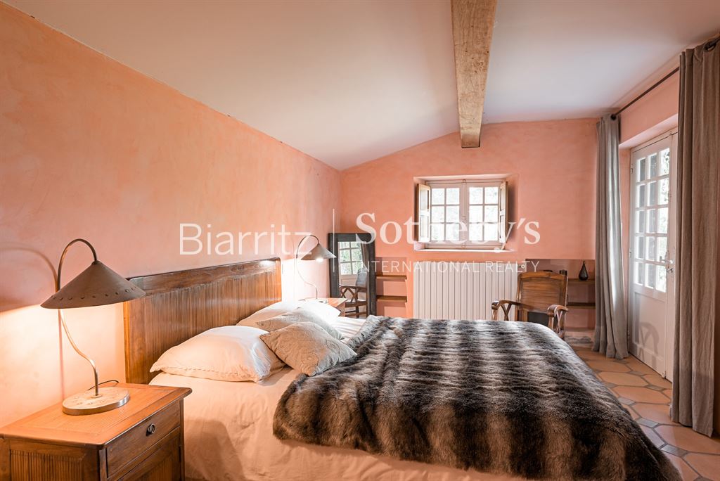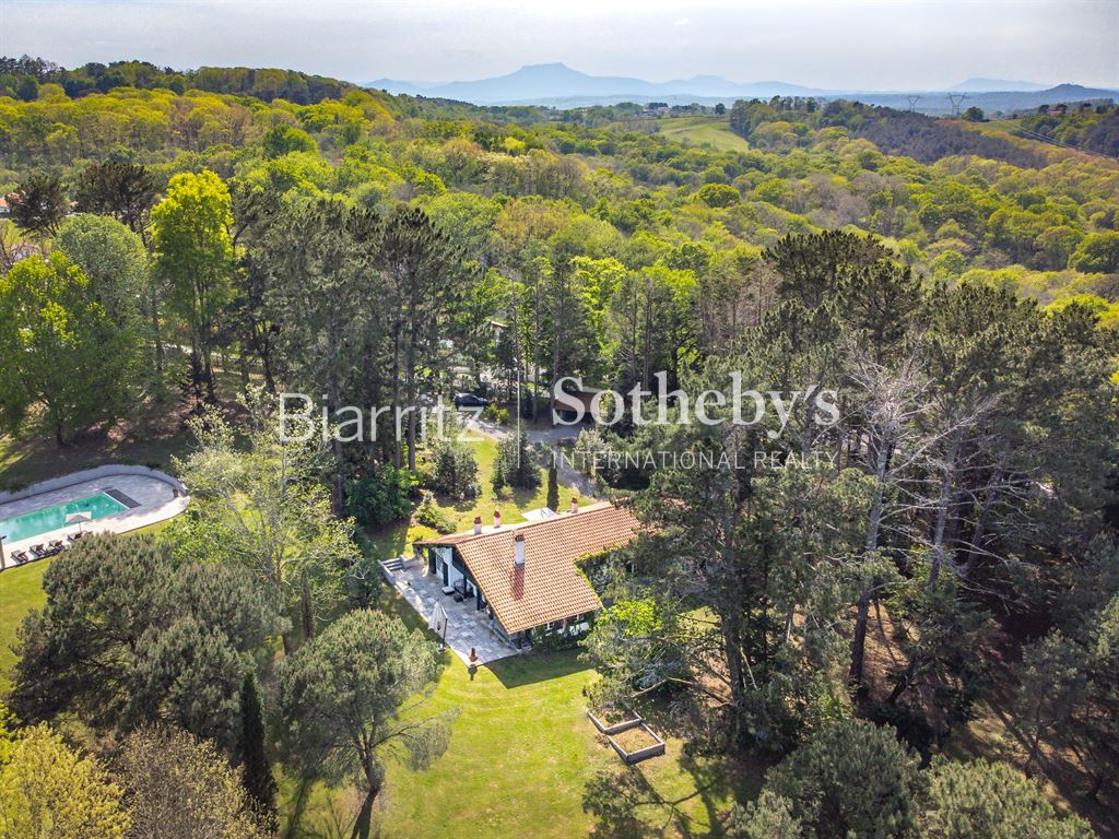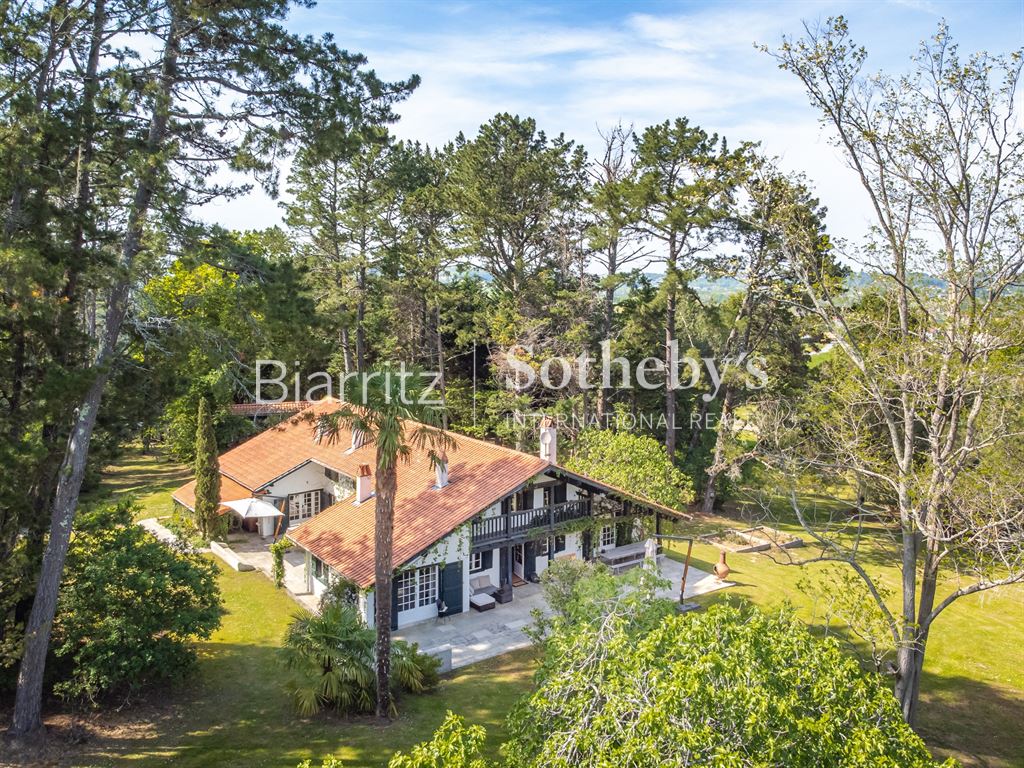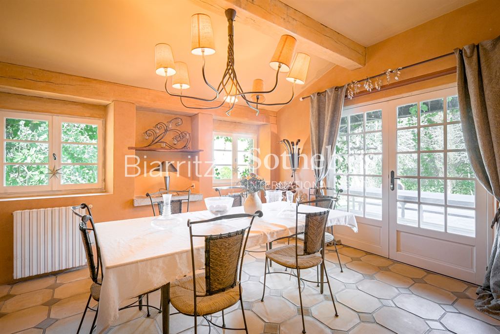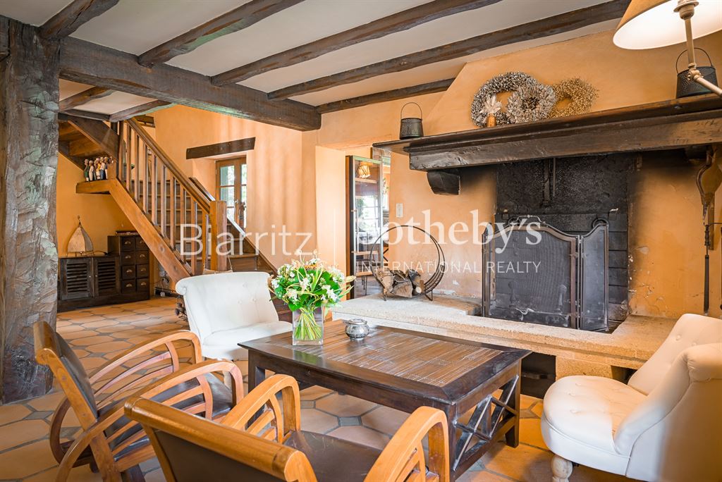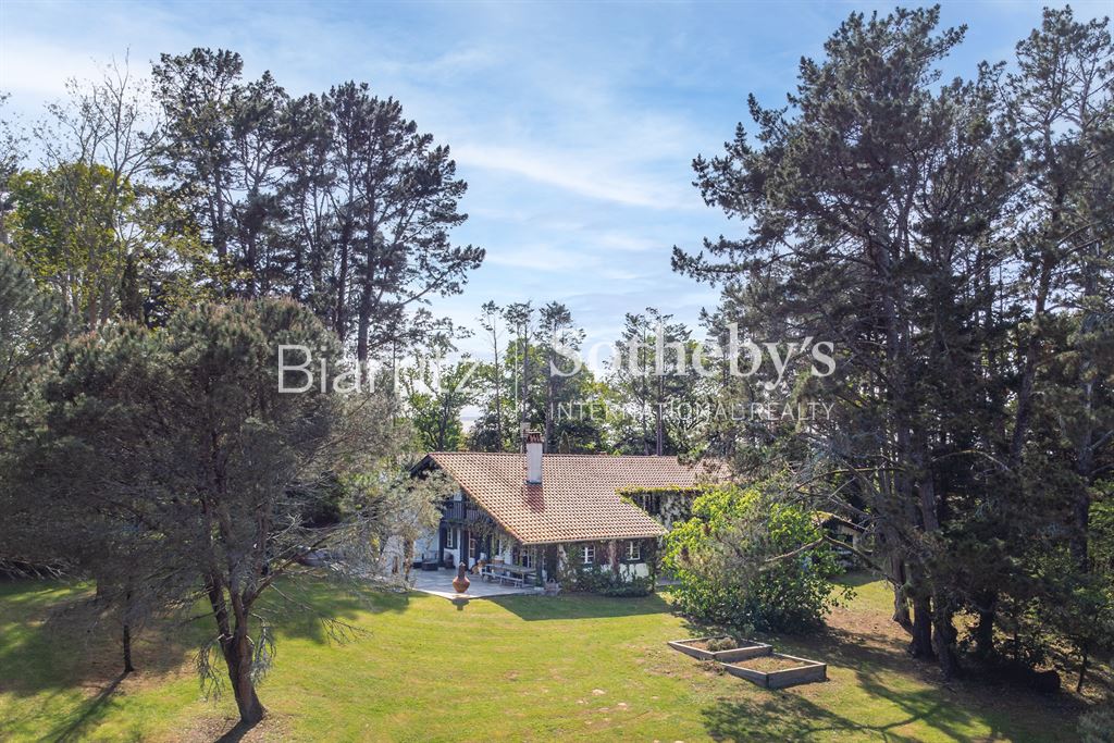 Nichée sur les hauteurs, cette authentique ferme du XVIIe siècle bénéficie d’un cadre naturel exceptionnel, au sein d’une vaste propriété d’environ 6 hectares de prairies et bois. Ce havre de paix offre une véritable immersion en pleine nature, loin du tumulte urbain, tout en restant à proximité des commodités. Le terrain généreux, alternant espaces ouverts et massifs boisés, invite à la détente, aux promenades, à la découverte de la faune et de la flore locales. Le calme absolu et la beauté du paysage constituent un véritable luxe, idéal pour les amoureux de la campagne et de grands espaces. La maison, d’environ 300 m², allie avec élégance le charme rustique de l’ancien à un confort contemporain. Vous y trouverez un séjour lumineux, un salon chaleureux avec cheminée, une salle à manger conviviale, ainsi qu’une cuisine séparée. Cinq chambres dont une suite parentale, quatre salles de bain, et un bureau complètent l’intérieur, offrant espace et intimité. L’extérieur propose un espace détente avec piscine et pool house, parfait pour profiter des beaux jours en toute tranquillité. Une grange traditionnelle et un abri pour voitures viennent parfaire cet ensemble unique. Située à quelques minutes du village, à 10 minutes de Bayonne et à moins de 30 minutes des plages d’Anglet et Biarritz, cette propriété conjugue avec succès vie campagnarde et accessibilité.