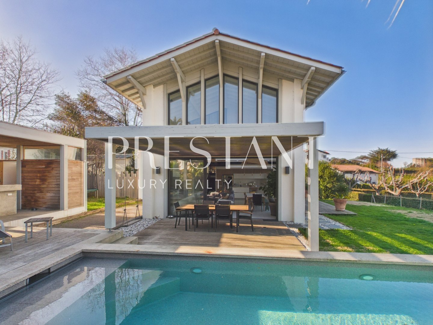 Située dans le secteur de Lafitenia, à quelques pas de la plage, cette propriété de 180 m² se distingue par une architecture résolument moderne, pensée pour offrir un confort d’usage optimal au quotidien. Dès l’entrée, la maison révèle son caractère spacieux et lumineux, s’intégrant harmonieusement dans son environnement où le regard s’échappe naturellement vers la mer, et la vue dégagée sur les coteaux de Guéthary. Le rez-de-chaussée a été conçu comme un vaste espace de vie convivial et traversant. Le séjour, baigné de lumière grâce à de larges ouvertures, communique avec une cuisine contemporaine de standing. Cet ensemble s’ouvre de plain-pied sur une terrasse connectée à la piscine, créant une transition fluide vers le pool house avec un panorama des collines basques. L’étage est entièrement dédié au repos et à l’intimité de la famille. Il accueille trois chambres spacieuses aux volumes équilibrés, offrant calme et confort à chacun de ses occupants. La fonctionnalité de la maison est parfaitement complétée par un garage fermé, un atout rare et indispensable dans ce quartier côtier recherché. À l’extérieur, le jardin paysagé propose des prestations agréables pour créer une expérience de bien-être. Enfin, un studio indépendant permet de recevoir des invités en toute autonomie ou d’envisager un espace de travail au calme. Les informations sur les risques auxquels ce bien est exposé sont disponibles sur le site Géorisques.