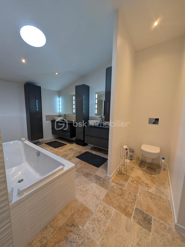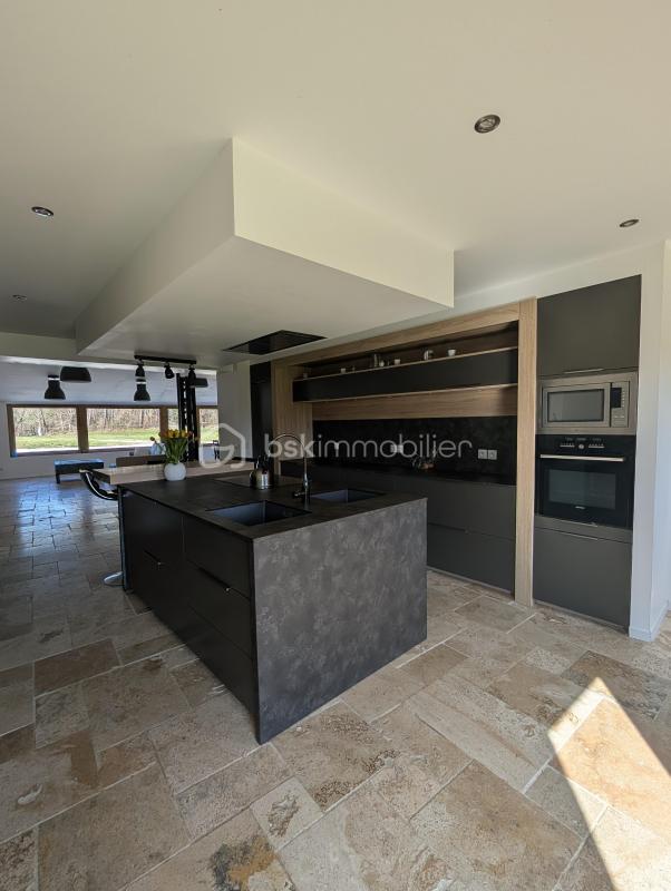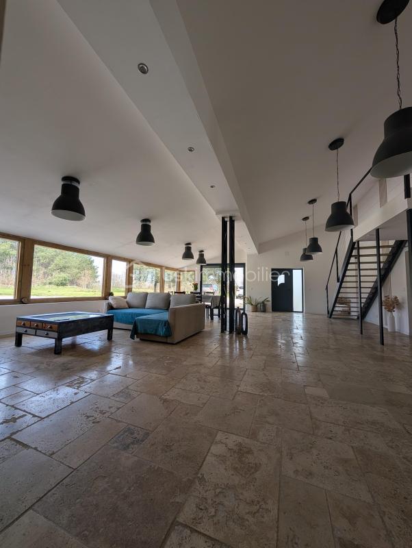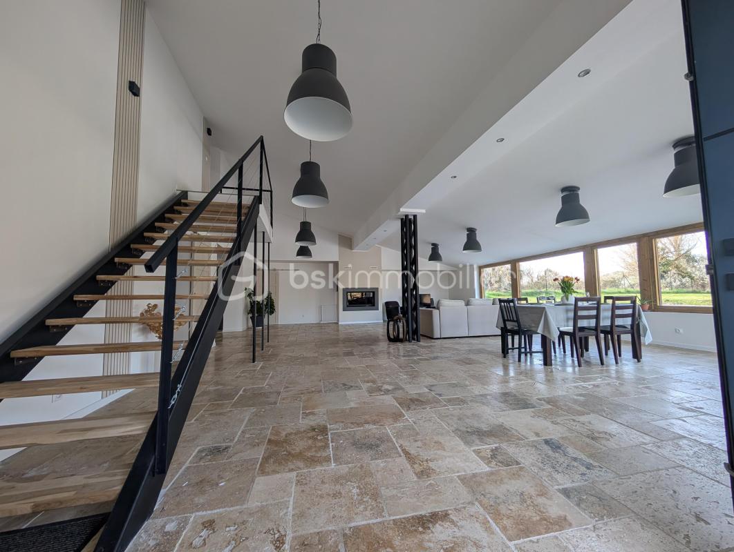 Laissez-vous séduire par cette maison entièrement rénovée dans un ‘esprit loft’ de 302m2 avec des matériaux nobles et un goût certain pour l’authenticité offrant un confort de vie unique où chaque détail a été pensé avec soin. Un bien rare, offrant des volumes hors normes et une luminosité omniprésente permettant la vue sur un terrain dégagé d’une superficie de 2844m2, au calme absolu. Ici, le caractère brut du design industriel rencontre le naturel de la pierre d’un sol en travertin. Au RDC, retrouvez tout le confort absolu (convient aux normes PMR). L’ensemble du rdc est équipé d’un plancher chauffant, diffusant une chaleur douce et invisible sous la pierre. L’ESPACE DE VIE : Dès l’entrée, le ton est donné : de l’espace, de la hauteur et une vue dégagée sur le jardin. – La pièce de vie de 86m2 s’ouvre sur un volume spectaculaire baigné de lumière grâce à ses larges vitres fixes, sa baie vitrée, véritables tableaux ouverts sur l’extérieur. Le plus, un insert en bois pour les moments chaleureux d’hiver, – La cuisine de 29m2 : un espace convivial haut de gamme entièrement équipé alliant fonctionnalité et design (cuisine Perene), lumineuse et ouverte sur l’espace salon. Cellier attenant à la cuisine. – Une spacieuse buanderie de 25m2 pouvant faire office également d’atelier, – Wc entièrement carrelé en travertin avec lave main. Une suite parentale de prestige de 64m2 au RDC, une ode au volume et raffinement, on y trouve : – Côté nuit : une chambre d’un volume rare de 34m2 laissant pénétrer la lumière grâce à ses 2 portes fenêtres, – Côté bain : un espace dédié aux bien-être avec une baignoire et un bac à douche extra-plat XXL, séparé par une verrière. Un ensemble de meubles vasques suspendus, offrant des rangements généreux pour chaque membre du couple. Un wc suspendu. – Côté dressing : un vaste espace dédié, prêt à être aménagé sur mesure selon vos envies. A L’ETAGE : l’espace famille L’escalier design mène à un palier desservant 3 chambres spacieuses, dont deux disposent de leur propre salle d’eau privative. Un agencement idéal pour l’indépendance des enfants ou des invités. Une des chambres peut faire office d’un espace bureau (fibre), coin lecture, salle de jeux selon vos envies d’aménagement. Une visite s’impose alors n’hésitez pas à me contacter au 0615828892 DPE C Terrain piscinable Les principales commodités : Libourne à 19km Bordeaux à 45 km Coutras à 12km St André de Cubzac 22km Aéroport Mérignac à 53 km Gare de Libourne (25 minutes) : Accès TGV Paris Ecole élémentaire publique à St Martin de Laye Collège à Guîtres (7 minutes) Supermarchés : Super U à Galgon (11 minutes), Intermarché à St Denis de Pile (15 minutes), Leclerc, Lidl, Aldi à Coutras (17 minutes) Pharmacie à Guîtres (7 minutes) Cette annonce référence 326772 vous est présentée par votre agent commercial BSK Immobilier VALÉRIE PERINI DA SILVA (EI) immatriculé au RSAC de LIBOURNE (33500) sous le numéro 94313018700017. Prix du bien : 429 900,00 € Les honoraires d’agence sont à la charge du vendeur. A propos des performances énergétiques : Date de réalisation du diagnostic énergétique : 13/06/2024 Score DPE : 89 kWhEP/m²/an Score GES : 26 kgepCO2/m²/an Montant estimé des dépenses annuelles d’énergie pour un usage standard : entre 2000.00 € et 2740.00 € par an. Prix moyens des énergies indexés sur l’année 2024 (abonnements compris). Les informations sur les risques auxquels ce bien est exposé sont disponibles sur le site Géorisques : www.georisques.gouv.fr