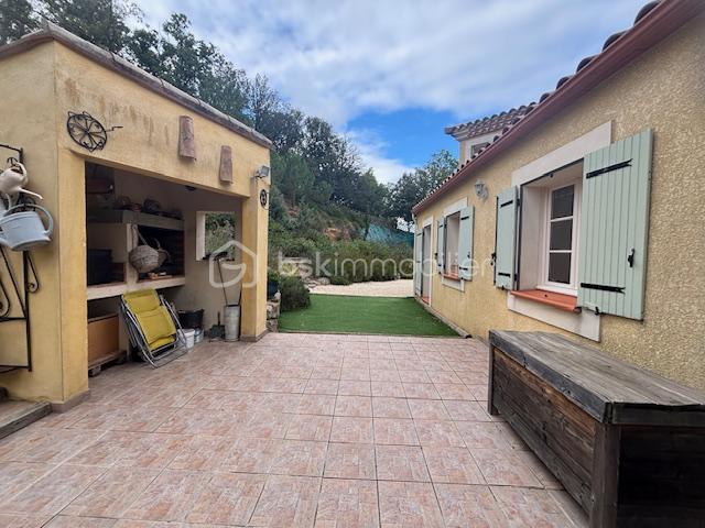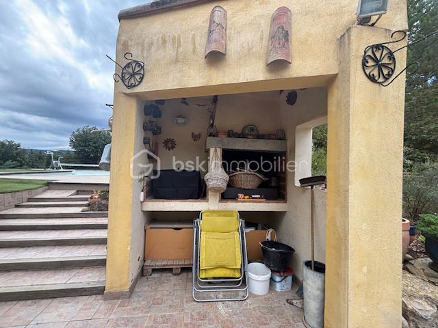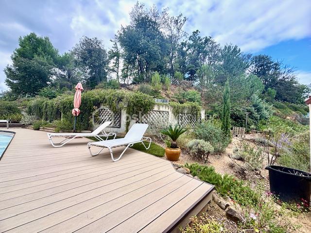 Le Charme de l’Atypique au Cœur de la Nature Découvrez cette magnifique villa d’architecte des années 2000, située dans un environnement privilégié, au calme absolu et sans vis-à-vis. Offrant 165 m² habitables, cette propriété unique se distingue par son architecture provençale et sa tour élégante, nichée sur une parcelle boisée et très bien entretenue, sans vis à vis de 9263 m². Un Espace de Vie Spectaculaire Dès l’entrée, vous serez séduit par le séjour cathédrale offrant des volumes généreux et une luminosité incroyable. La cuisine, entièrement équipée, s’ouvre sur les espaces de réception, créant un lieu de vie convivial et moderne, ainsi qu’un cellier; Le tout offrant de belles terrasses carrelées et ombragées. Une Configuration Idéale : Le confort du plain-pied est ici privilégié avec : 3 chambres spacieuses accessibles en rez-de-chaussée et une dans la tour (chambre ou bureau). Dans la tour : Une mezzanine surplombant le séjour ainsi qu’un bureau indépendant, parfait pour le télétravail ou un coin bibliothèque. Le terrain est un véritable havre de paix, alternant espaces boisés, préservés et zones aménagées : champs d’ oliviers Espace Piscine : Une magnifique piscine entourée d’une vaste terrasse carrelée, idéale pour vos réceptions estivales. Maison Indépendante : Parfait pour recevoir des invités, un adolescent ou pour une activité de chambre d’hôtes. Dépendances : Une serre pour les passionnés de jardinage et un portail motorisé pour votre confort et sécurité. L’avis de l’expert : ‘Une propriété rare qui allie le volume d’une construction contemporaine au charme d’une demeure de caractère. La vue dégagée sur les bois et le terrain immense garantissent une intimité totale.’ Prix du bien : 390 000,00 € Les honoraires d’agence sont à la charge du vendeur. A propos des performances énergétiques : Date de réalisation du diagnostic énergétique : 24/12/2025 Score DPE : 78 kWhEP/m²/an Score GES : 3 kgepCO2/m²/an Montant estimé des dépenses annuelles d’énergie pour un usage standard : entre 1220.00 € et 1699.99 € par an. Prix moyens des énergies indexés sur l’année 2021 (abonnements compris). Les informations sur les risques auxquels ce bien est exposé sont disponibles sur le site Géorisques : www.georisques.gouv.fr