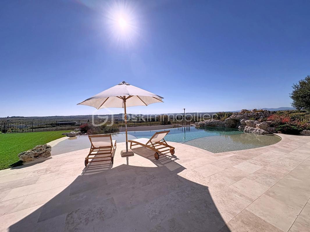 Nichée sur les hauteurs de Magalas, cette propriété d’exception séduit par son architecture contemporaine, sa situation privilégiée et sa vue panoramique à couper le souffle. L’environnement, verdoyant et intimiste, jouit d’un cadre privatif tout en restant à proximité immédiate des commodités. Sur une parcelle de 1383 m² et avec près de 174 m² habitables, cette villa de plain-pied aux volumes généreux et à la luminosité omniprésente, offre des prestations haut de gamme. Sa distribution, logique et harmonieuse, se compose d’un vaste séjour, d’une cuisine équipée, de trois chambres dont une suite parentale avec sa salle d’eau et son dressing, d’un bureau, d’une salle de bains et d’un garage. A l’abri des regards, une somptueuse piscine à débordement avec son poolhouse complètent les extérieurs soigneusement aménagés et clôturés. Une adresse coup de cœur pour une famille en quête de sérénité et d’exclusivité. —————————————————————————————————————————- Nestled in the hills above Magalas, this exceptional property captivates with its contemporary architecture, prime location and breathtaking panoramic view. The lush, secluded surroundings offer a private setting whilst remaining within easy reach of local amenities. Set on a 1,383 sqm plot and offering nearly 174 sqm of living space, this single-storey villa, with its generous proportions and abundant natural light, features high-end finishes. Its logical and harmonious layout comprises a spacious living room, a fitted kitchen, three bedrooms including a master suite with en-suite shower room and walk-in wardrobe, a study, a bathroom and a garage. Set away from prying eyes, a sumptuous infinity pool with its pool house completes the carefully landscaped and fenced grounds. A dream property for a family seeking peace and exclusivity. Cette annonce référence 327489 vous est présentée par votre agent commercial BSK Immobilier VANESSA DANIZAN (EI) immatriculé au RSAC de VILLENEUVE-LES-BEZIERS (34500) sous le numéro 93518042200013. Prix du bien : 997 500,00 € Les honoraires d’agence sont à la charge du vendeur. A propos des performances énergétiques : Date de réalisation du diagnostic énergétique : 17/11/2025 Score DPE : 42 kWhEP/m²/an Score GES : 1 kgepCO2/m²/an Montant estimé des dépenses annuelles d’énergie pour un usage standard : entre 620.00 € et 900.00 € par an. Prix moyens des énergies indexés sur l’année 2023 (abonnements compris). Les informations sur les risques auxquels ce bien est exposé sont disponibles sur le site Géorisques : www.georisques.gouv.fr