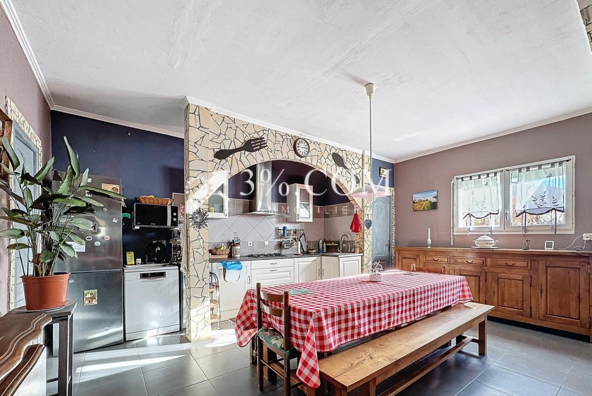 Contact: Audrey Fernandez 06.43.29.30.54 Découvrez cette belle propriété de 8 pièces avec une maison principale de près de 114 m2 et sa dépendance de 64 m2 située à Portel-des-Corbières, dans un environnement naturel, calme et verdoyant. Sur un terrain spacieux de 2566 m2, cette maison offre une multitude de possibilités : habitation familiale, investissement locatif ou projet professionnel. La maison principale À l’étage : 113.74 m2 Séjour lumineux de 33.82 m2, orienté sud & est, avec vue sur le massif des Corbières. Cuisine semi-ouverte de 11.16 m2, aménagée , équipée, fonctionnelle et conviviale. Buanderie de 4,45 m2. Dégagement de 7.27 m2 avec deux grands placards. Salle de bain de 7.34 m2, équipée d’un placard. Trois chambres : 12.82 m2 avec un dressing intégré de 1 m2. 14.78 m2 avec un double placard de 0,7 m2 chacun. 11.45 m2 avec un placard de 0,93 m2. Chaque chambre est équipée de 2 fenêtres pour une double orientation – sud & ouest pour les deux premières chambres / nord & ouest pour la 3ème – offrant une belle clarté ainsi qu’une vue dégagée et apaisante. La dépendance au rez-de-chaussée: 64.3 m2: Pièce à vivre (séjour/salon/cuisine équipée) de 37.07m2. Chambre spacieuse de 15.21 m2 avec un grand dressing. Salle d’eau de 6.4 m2 avec un grand placard placard intégré. Cellier de 4.55 m2. Cave à vin de 11,08 m2 avec buanderie de 4 m2. Cette dépendance est accessible indépendamment mais peut être reliée à la maison principale par un escalier intérieur pour former une seule et grande habitation comme cela était le cas initialement. Les extérieurs La maison, située au pied du massif des Corbières, présente une grande terrasse arborée, ornée de plantes exotiques, yukas, cactus etc., parfaite pour se détendre ou recevoir. Espace barbecue convivial pour vos soirées estivales. Un hangar d’environ 10 m2 pouvant abriter 2 véhicules Les atouts supplémentaires Local professionnel de 150 m2 attenant à la propriété Option à discuter: Prix seul sans la maison: 135500 EUR net v.Prix local + maison: 605000 EUR PRIX NEGOCIABLE Description: Local de 120 m2 + 2 locaux attenant de près de 6 m2 chacun+ un hangar de 26 m2. Local professionnel pour une activité artisanale, commerciale – location de box etc. ou artistique ou espace de stockage pour matériel ou véhicules. Un bien idéal pour un projet mixte : habitation principale, activité professionnelle et/ou investissement locatif. Proximité des commerces et services tout en bénéficiant d’un cadre paisible, sans nuisances. Cette propriété unique, alliant charme, potentiel et fonctionnalité, est une opportunité rare dans la région. Mode de chauffage: poele à granulets DPE: classe D / GES: B Taxe foncière: 1200 euros Contact: Audrey Fernandez 06.43.29.30.54 Conseillère Immobilier: RSAC 985307842 Pour plus d’informations ou pour organiser une visite, contactez-nous dès aujourd’hui. Une opportunité exceptionnelle à saisir sans tarder ! – Annonce rédigée et publiée par un Agent Mandataire –