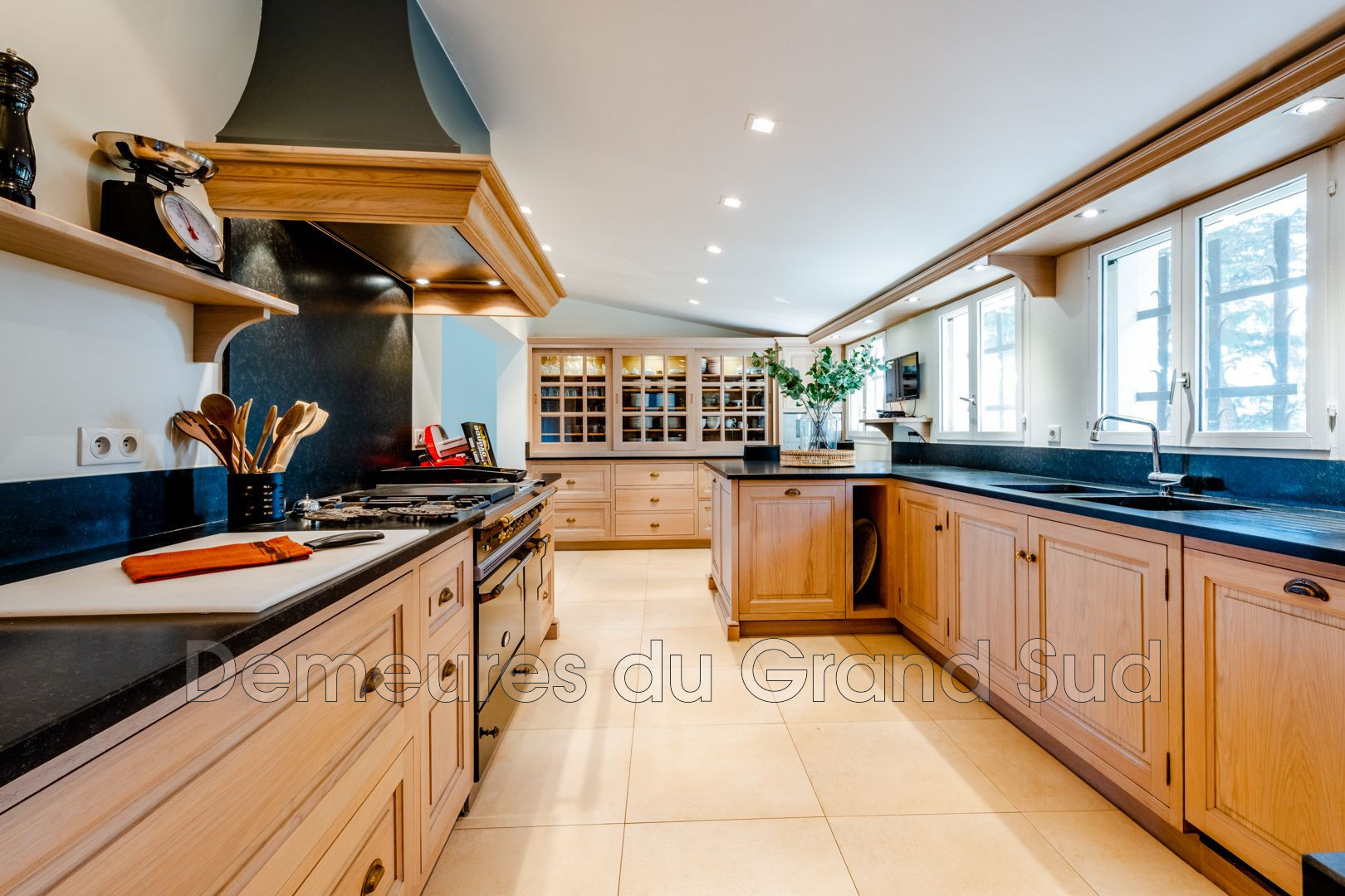 Les pièces de vie du rez-de-jardin sont lumineuses et s’ouvrent largement sur le parc. Il est composé d’une grande cuisine équipée avec arrière-cuisine, d’un grand salon majestueux avec une cheminée, d’un deuxième salon plus intimiste avec une cheminée également, d’un salon bibliothèque attenant à un troisième salon avec cheminée et plusieurs autres pièces pouvant être aménagées en une 9ème chambre en suite.