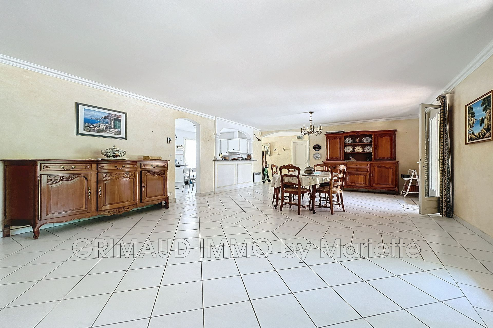 Villa de plain-pied d’environ 155 m², située au calme, sur un joli terrain plat et clôturé de 1 420 m². Elle comprend une entrée avec WC invités, un vaste séjour lumineux de 67 m² avec cuisine ouverte, une buanderie avec accès direct au double garage. Côté nuit, trois chambres se partagent une salle d’eau avec WC, tandis que la suite parentale dispose d’une salle de bains privative et s’ouvre sur la terrasse et la piscine (10×5 m). Exposée face à la nature, cette maison bénéficie d’un environnement paisible tout en étant à quelques pas des écoles et du centre de Cogolin. Pour plus de biens, regardez sur notre site : www.grimaudimmo.com