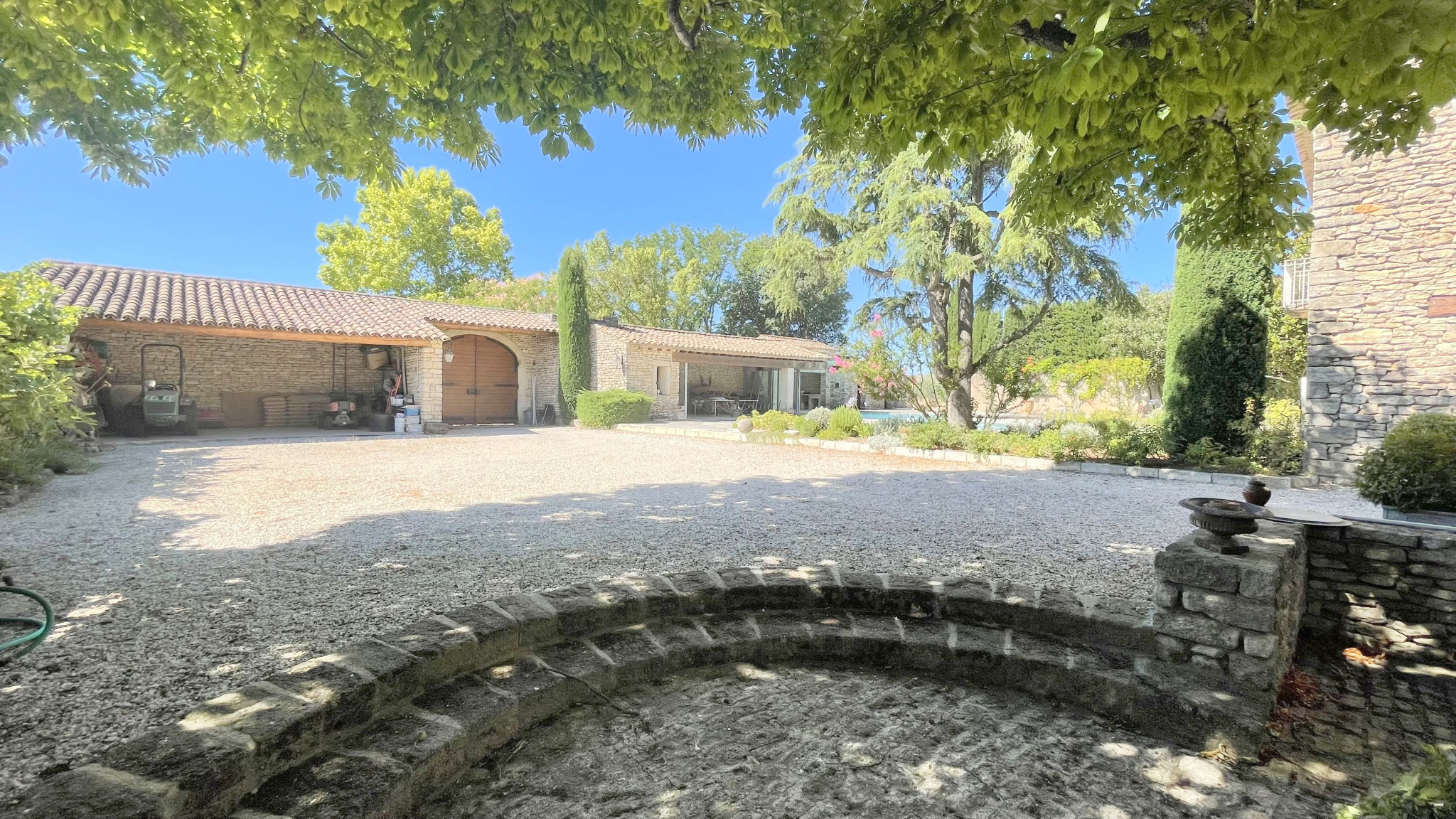 Pour les extérieurs, la propriété vous offre un vaste pool house de plus de 50m2 avec barbecue et four à pizzas, ainsi qu’une piscine à débordement et double cascade.
