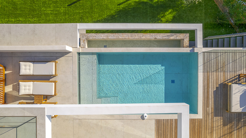 Au 2ème niveau se trouvent deux suites parentales, avec salle de bain et salle d’eau, WC, dressing, donnant sur une belle terrasse à la vue mer éloignée, exposée plein sud. Au même niveau se trouvent également la piscine à débordement, une douche extérieure, une cuisine d’été fermée, ainsi qu’une salle d’eau + WC.