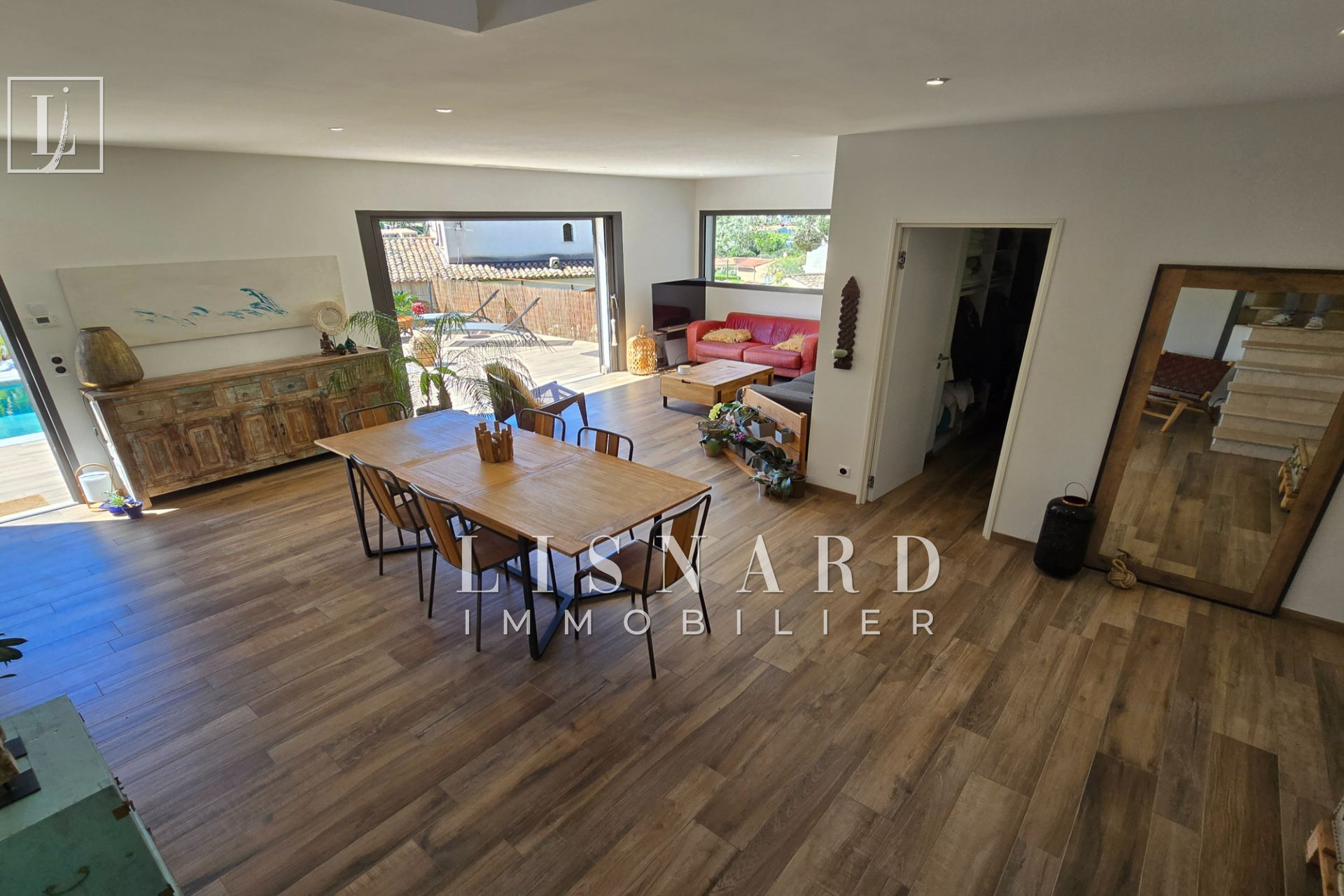 Magnifique maison moderne dans un quartier calme de Vallauris. Une propriété récente et individuelle de 145 m², construite en 2022 sur un terrain de 1428 m². Cette maison se compose au rez-de-jardin d’un salon avec cuisine américaine exposé sud, donnant sur une terrasse et une piscine, une buanderie, une chambre de plain-pied avec salle d’eau et un wc. A l’étage, 3 chambres avec deux salles d’eau et un wc indépendant. Ses prestations de haute qualité comprennent une climatisation, des volets roulants électriques, du double vitrage, une piscine, un plancher chauffant et de nombreux stationnements. Son état intérieur est neuf. Elle est chauffée par une pompe à chaleur et est raccordée au tout-à-l’égout.