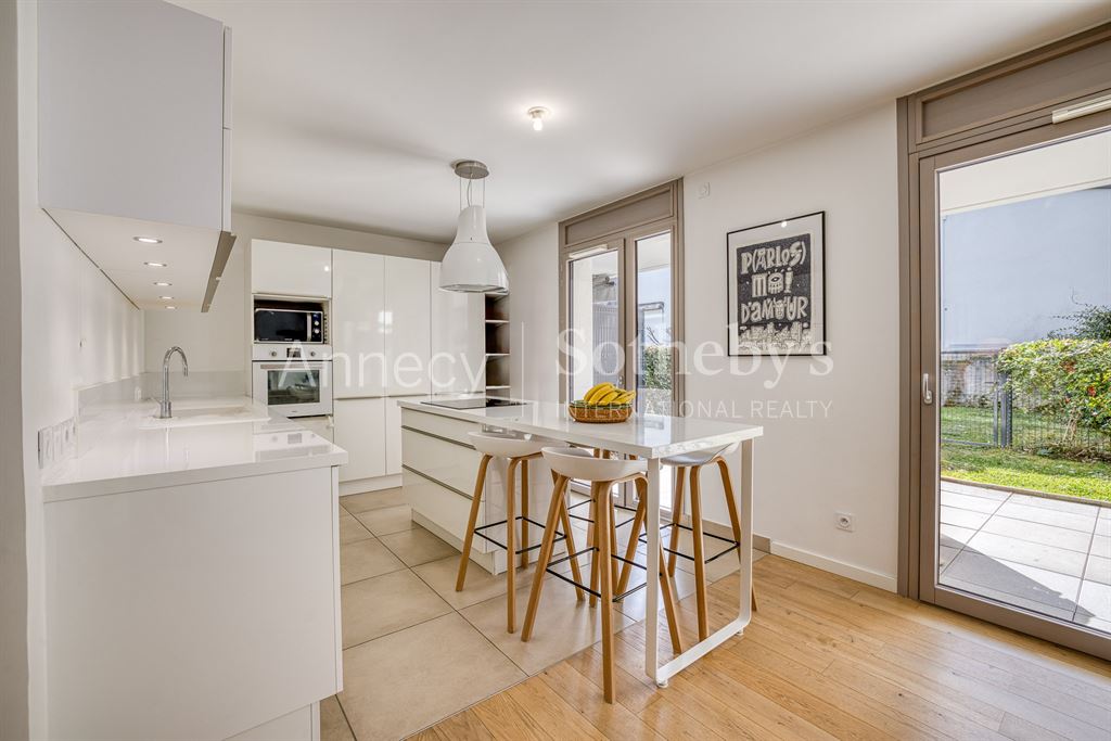 ANNECY SOTHEBY’S INTERNATIONAL REALTY vous propose, un superbe appartement en rez-de-jardin de 118 m² dans un quartier privilégié, à 5 minutes à pied du lac d’Annecy, offrant calme et sérénité. Cet élégant appartement, idéalement situé , bénéficie d’un agencement soigné et d’un environnement paisible. L’appartement se trouve dans une résidence récente et bien entretenue, garantissant un cadre de vie agréable et sécurisé. L’entrée vous accueille et vous guide vers les différentes pièces de l’appartement. La pièce de vie principale offre un grand espace convivial et harmonieux. La cuisine est entièrement équipée, avec des finitions modernes et de nombreux rangements. L’appartement dispose de quatre chambres, parfaites pour accueillir une famille ou pour créer des espaces personnalisés selon vos besoins. La salle de bains, moderne et fonctionnelle, est équipée d’une baignoire. L’appartement bénéficie également d’une terrasse et d’un jardin où vous pourrez vous détendre et profiter des beaux jours en toute tranquillité. Pour compléter cet ensemble d’exception, vous trouverez un garage et une cave en sous-sol. L’emplacement de cet appartement est un véritable atout. Situé dans le quartier très prisé d’Albigny, vous bénéficierez d’un cadre de vie agréable, avec toutes les commodités à proximité : commerces, écoles, parcs et transports en commun.ANNECY SOTHEBY’S INTERNATIONAL REALTY, votre expert dans la vente et la location de propriétés de luxe sur le bassin Annécien et les Aravis.